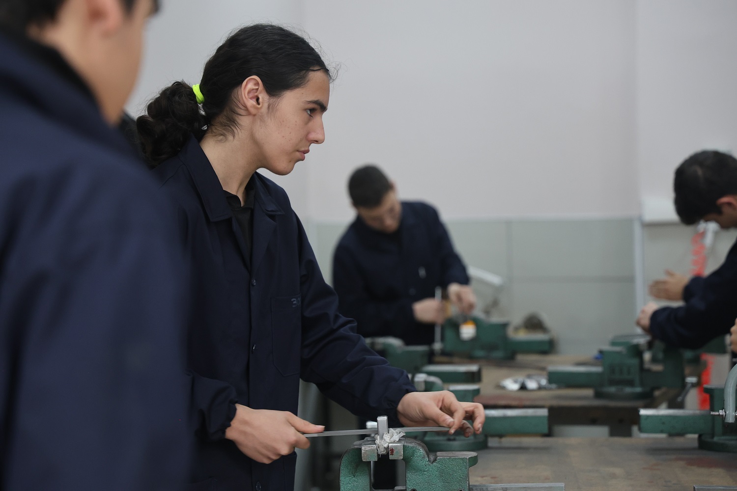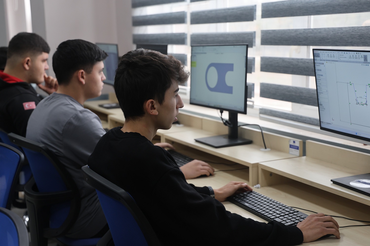Makine Teknolojisi atölye şefi Ahmet Turan, "Burada temel bilgileri en azami şekilde öğrenmeye çalışıyor çocuklarımız. Laboratuvarda bilgisayar üzerinde tasarımlarını yapıp daha sonra uygulamalarını ardından CNC tezgahımızda üretim yapıyoruz. Bu şekilde üretime katkı sağlıyorlar" diye konuştu.