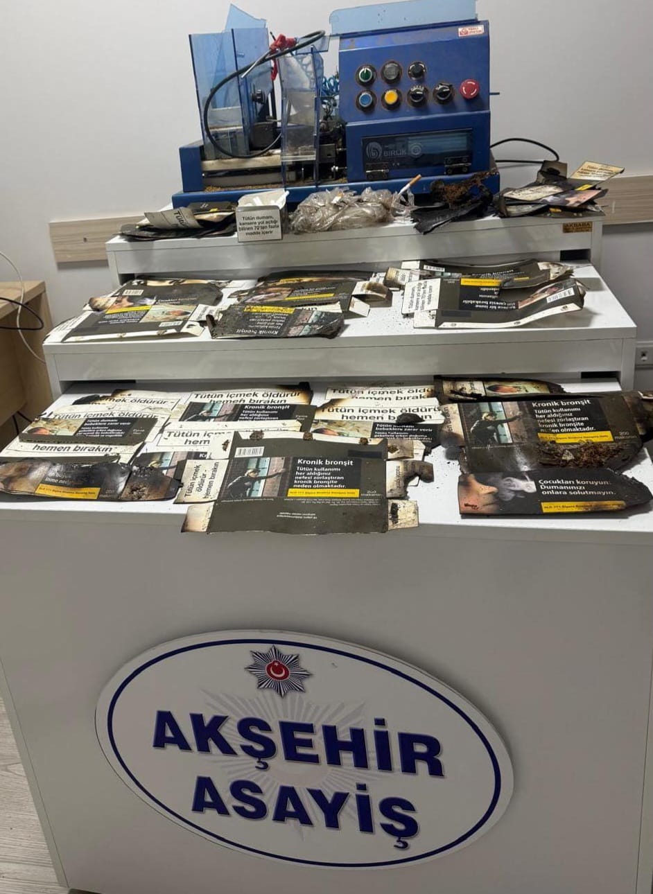 Yapılan aramada bir sigara dolum makinesi ele geçirildi. B.E. ve G.E. gözaltına alındı. Yanan malzemelerle birlikte dolum makinesine de el konuldu.