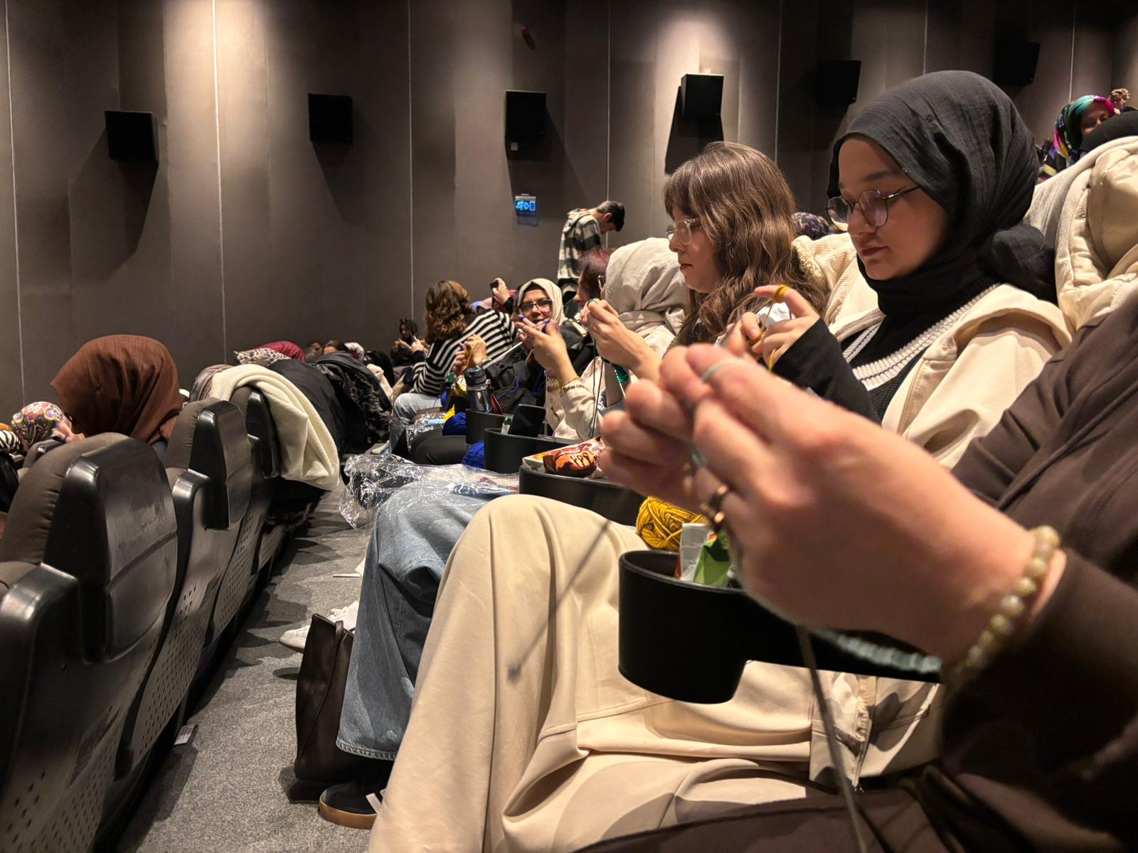 Etkinliğin iletişim ve organizasyon sürecine de değinen Kocaarslan, kadınların kendisine Instagram'daki ‘Elçin'in Atölye' hesabı üzerinden ulaştığını, ayrıca aktif bir WhatsApp grubu oluşturduklarını belirtti. Kocaarslan, "İlk olarak beni tanımayanlar için kendimi tanıtıyorum. Ardından sponsorumuz olan Brother ailesine teşekkür ediyoruz. Katılımcılarımız arasından çekilişle bir kişiye Brother dikiş makinesi hediye ediyoruz. Yaklaşık 220 kadın etkinliğimize katılıyor. Çekilişin ardından sinema gösterimi başlıyor ve film eşliğinde örgü örmeye devam ediyoruz.” diye konuştu.
