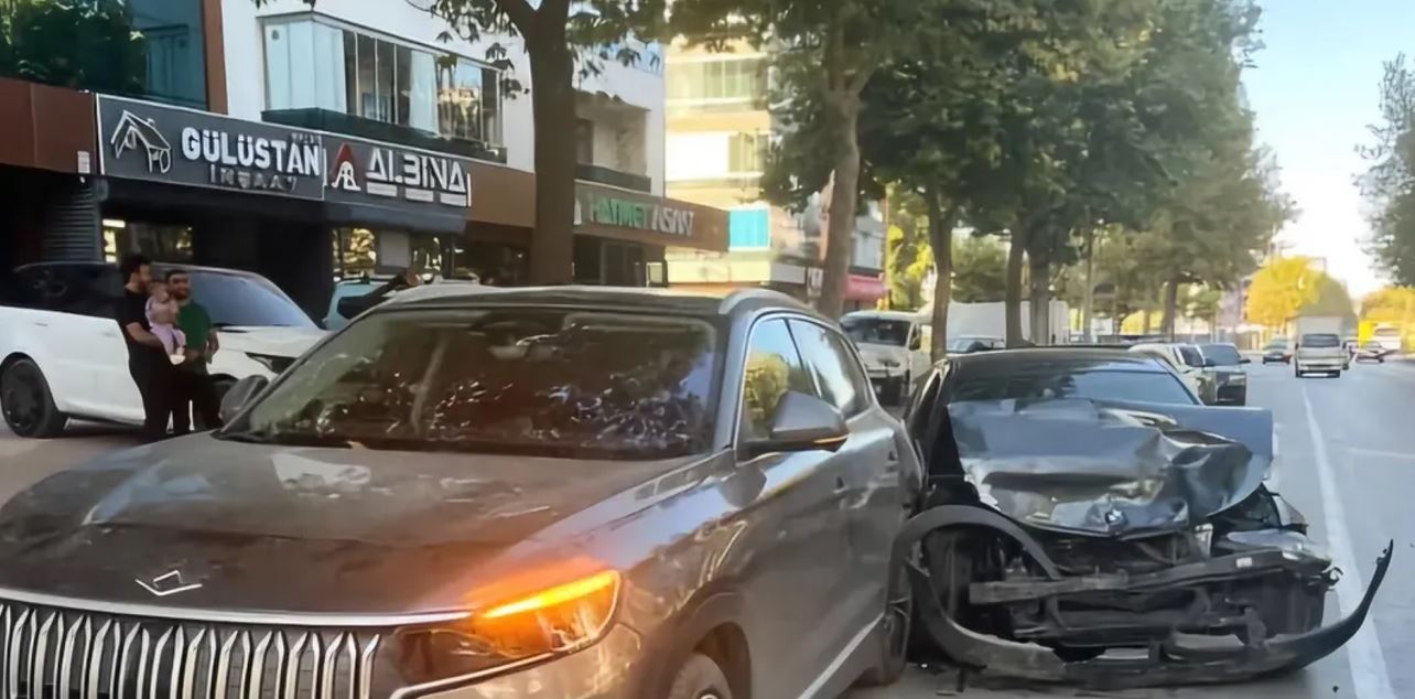 TOGG T10X'e arkadan çarpan BMW'nin ön tarafının paramparça olduğu görüldü.