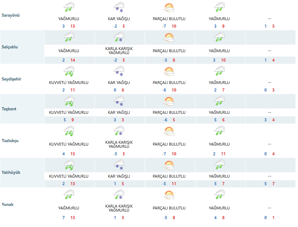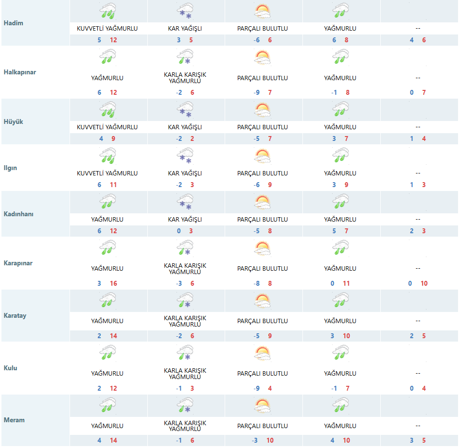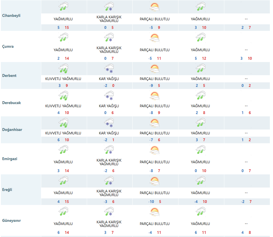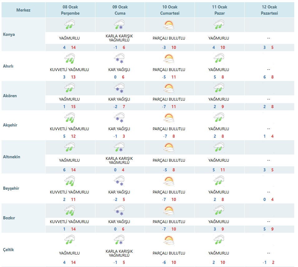 KONYA 5 GÜNLÜK HAVA DURUMU