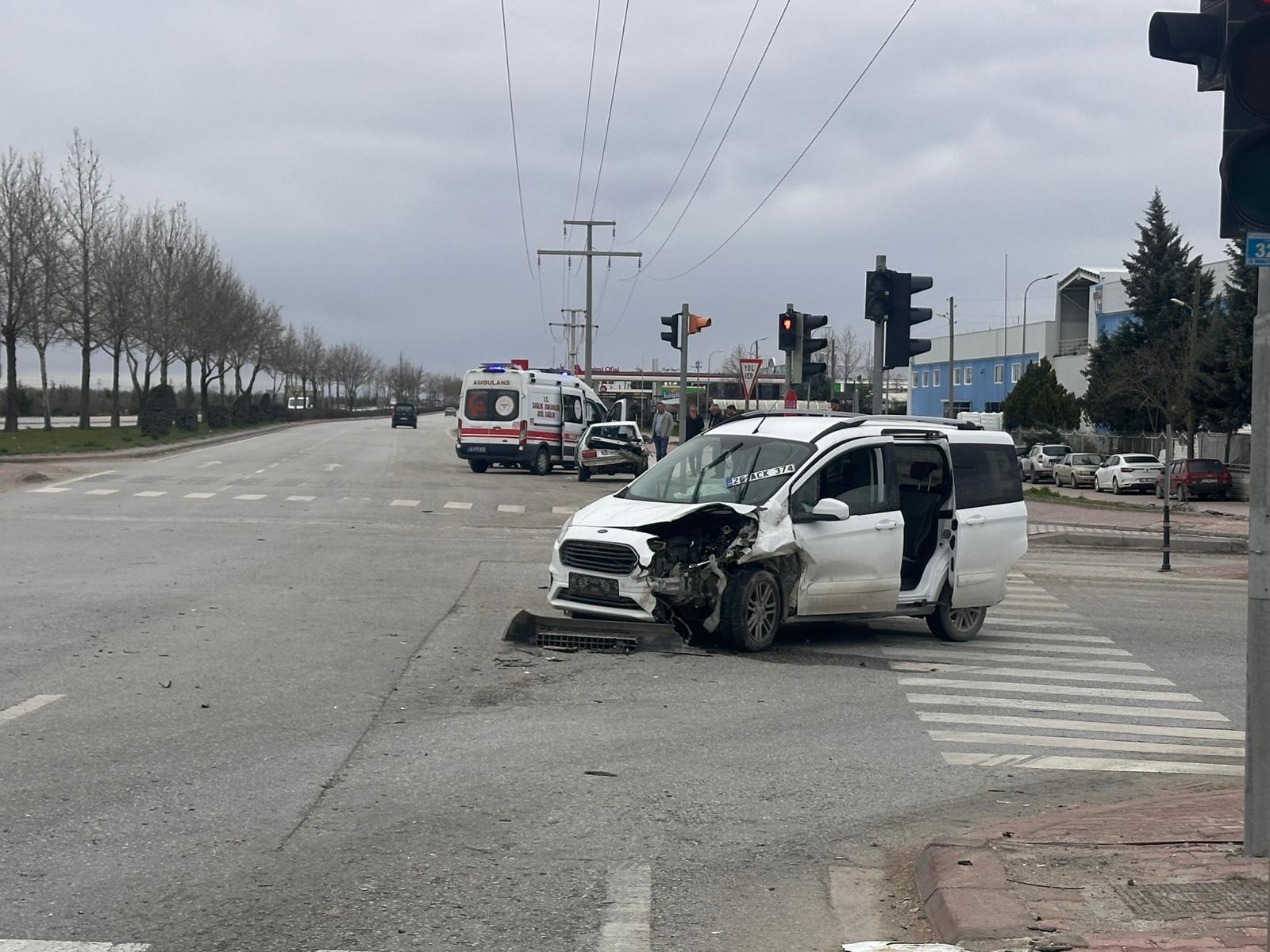 Otomobil ile hafif ticari aracın çarpışması sonucu meydana gelen kazayı görenler 112 Acil Çağrı Merkezini arayarak ekip istedi.