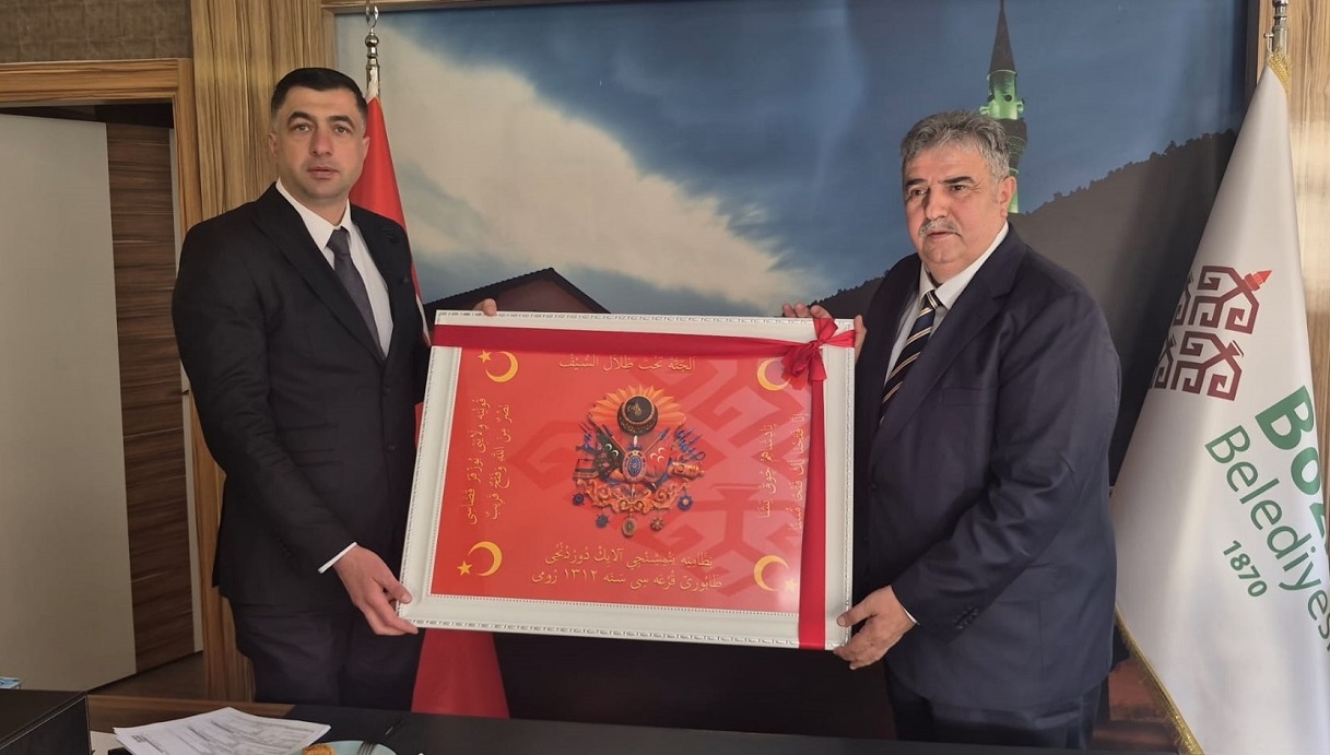 Ziyaretin sonunda Başkan adayı Kemal Tekin ve beraberindeki heyet tarafından Karabulut'a hediye takdim edildi.
