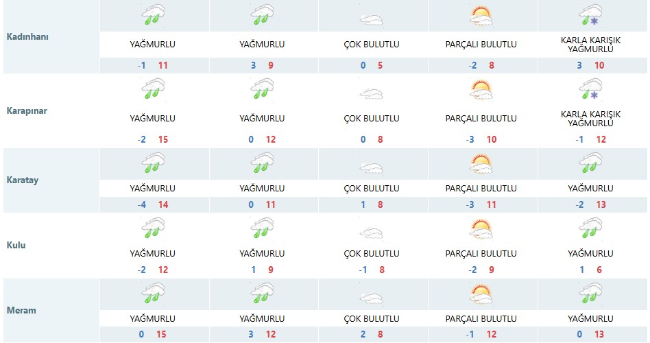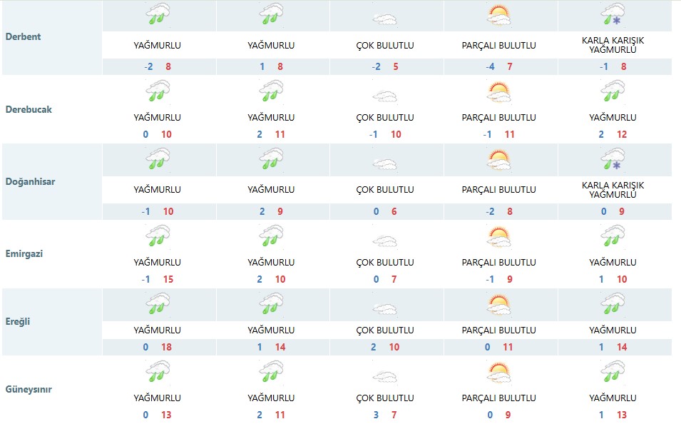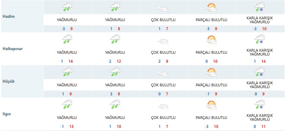 KONYA 5 GÜNLÜK HAVA DURUMU