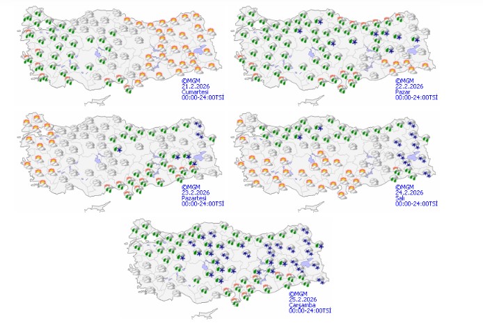 Konya genelinde 21-25 Şubat tarihleri arasındaki hava durumu tahminlerine göre yağışlı hava etkisini sürdürecek. İl merkezi ve tüm ilçelerde hafta sonu yağmur beklenirken, yeni haftada çok bulutlu ve parçalı bulutlu bir hava hakim olacak. Çarşamba günü ise bazı ilçelerde karla karışık yağmur görülecek.