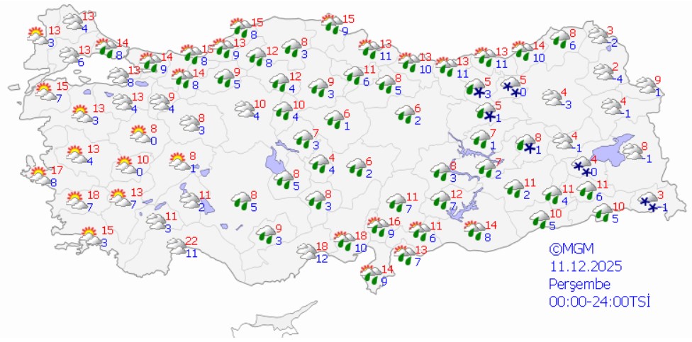 Meteoroloji Genel Müdürlüğü'nden alınan bilgilere göre Konya için 5 günlük hava durumu tahmini:
