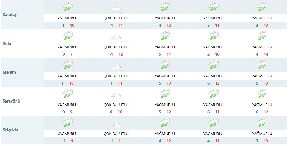 KONYA 5 GÜNLÜK HAVA DURUMU