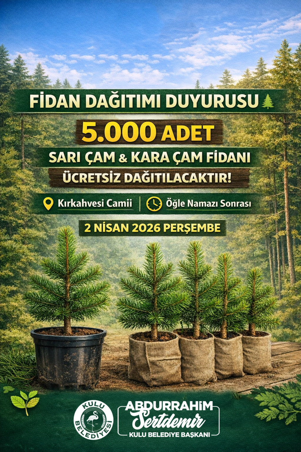 İlçenin daha yeşil bir görünüme kavuşması ve doğaya katkı sağlanması amacıyla düzenlenen etkinliğe tüm vatandaşların davetli olduğu belirtildi. Yetkililer, Kulu halkını fidanlardan faydalanmaya ve gelecek nesillere daha yaşanabilir bir çevre bırakmak için bu anlamlı çalışmaya destek vermeye çağırdı.