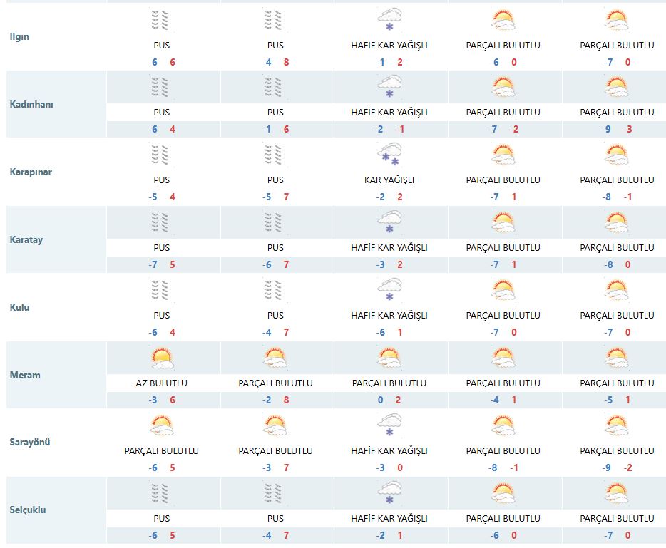 İŞTE İLÇE İLÇE KONYA HAVA DURUMU