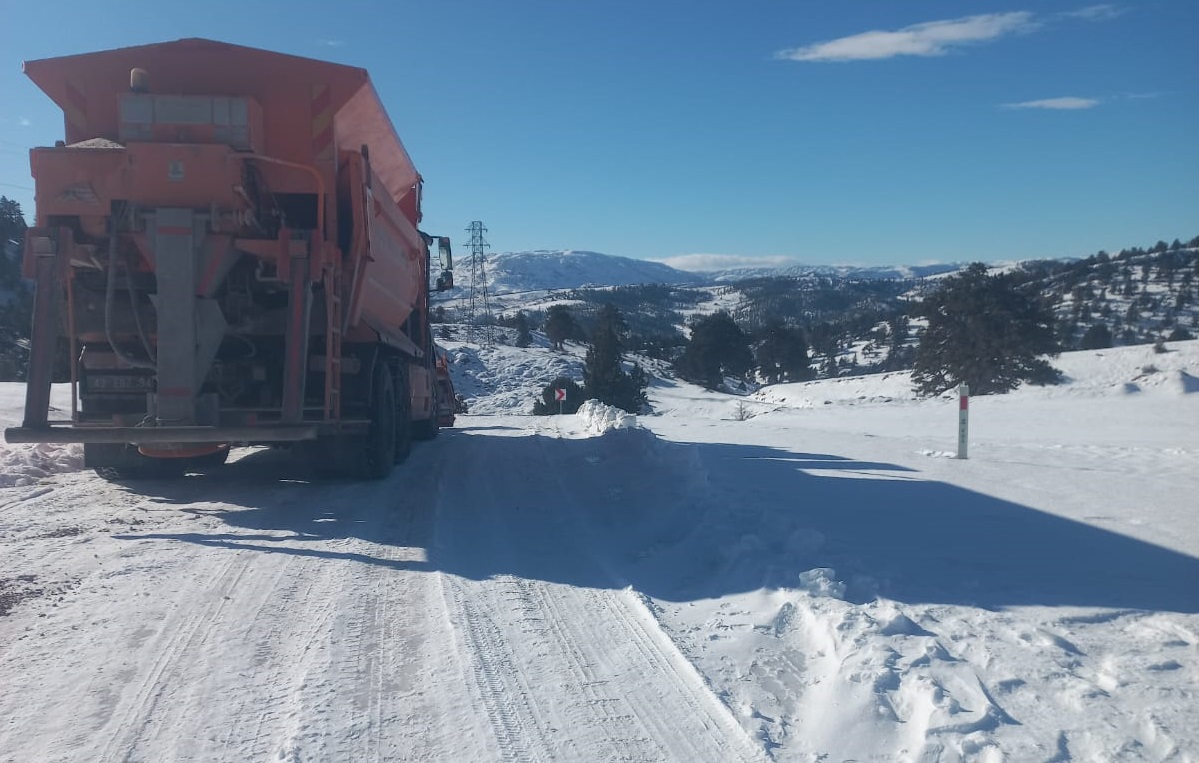 Ekipler Güneysınır ilçesinde kar yağışı ve buzlanma riski bulunan yollarda kapsamlı çalışma yürüttü.