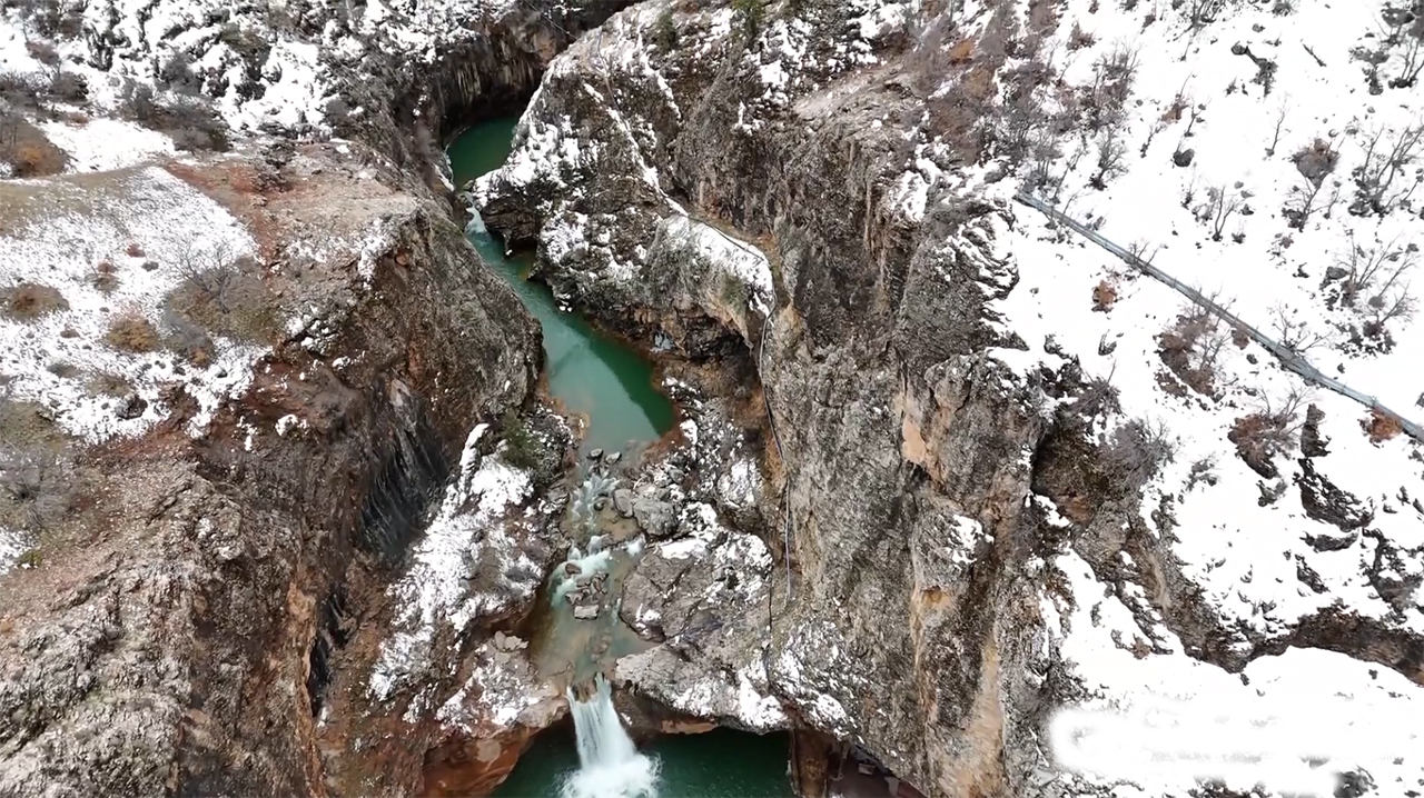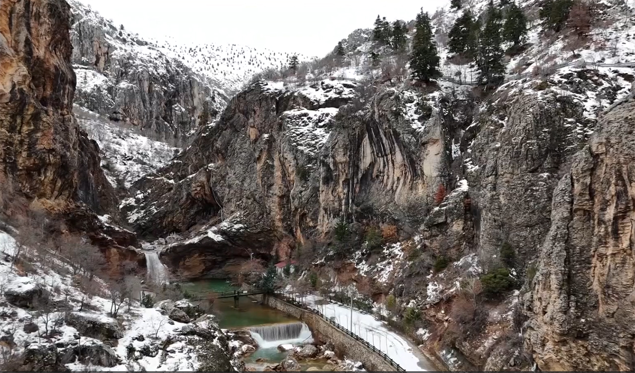 Etrafı sarp dağlarla çevrili, uçurum ve düzlüklerin birbirini tamamladığı kanyon ve civarı, kar yağışının ardından farklı bir güzelliğe büründü.