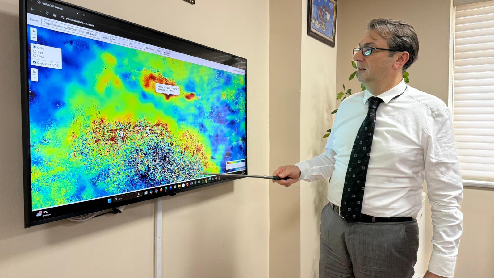 "Ova bölgesinde önemli yapılaşmalar ve tarım alanları mevcut. Burayı da aynı teknolojilerle izlediğimiz zaman yılda 6 santimetre civarında ovada düşey yönlü hareketin, çökmenin meydana geldiğini görüyoruz. Bu da çok önemli bir hareket. Bu zemin suyu çekilmesiyle ilişkili olabileceği gibi bölgede önemli faylar da var. Bu fay hareketleri de bu düşey yönlü hareketleri büyük ihtimalle tetikliyor. Çok enteresan bir bulgu da Uludağ'ın yılda ortalama 2 santimetreye kadar yükseldiğini görüyoruz. Bu hareket gelecekte de devam ederse yüzyıl içerisinde Uludağ'ın yaklaşık 2 metre kadar yükselmesi söz konusu olabilir."