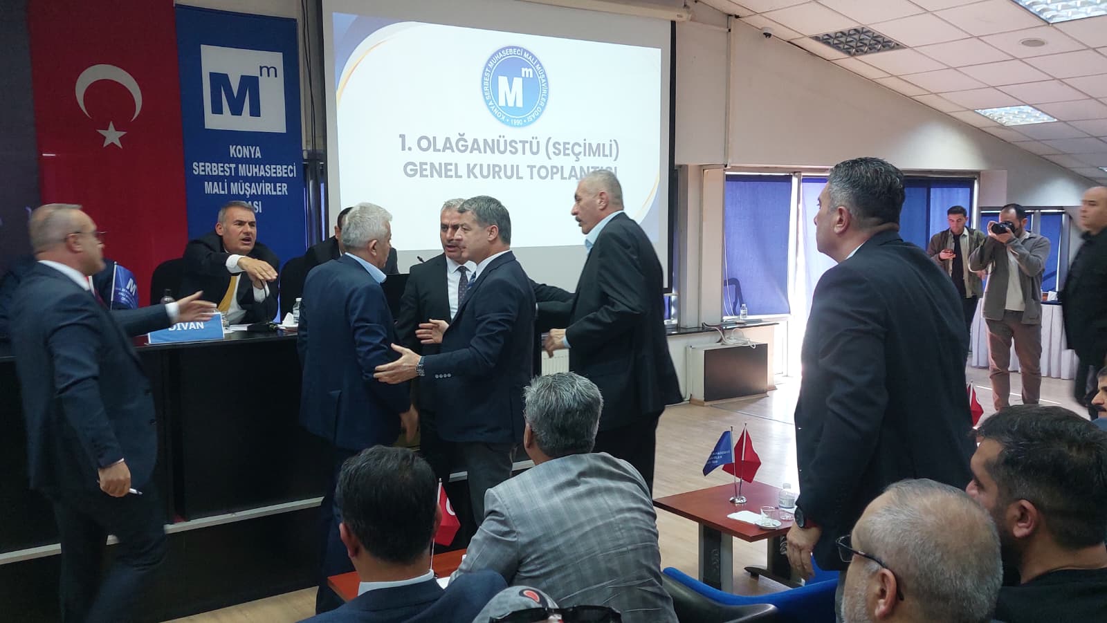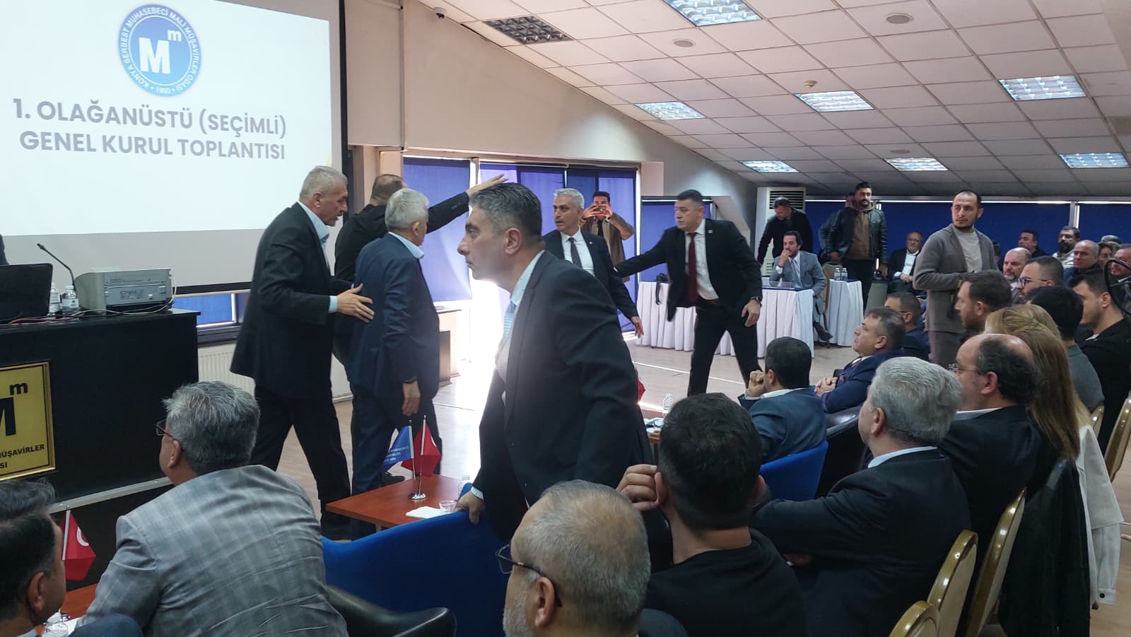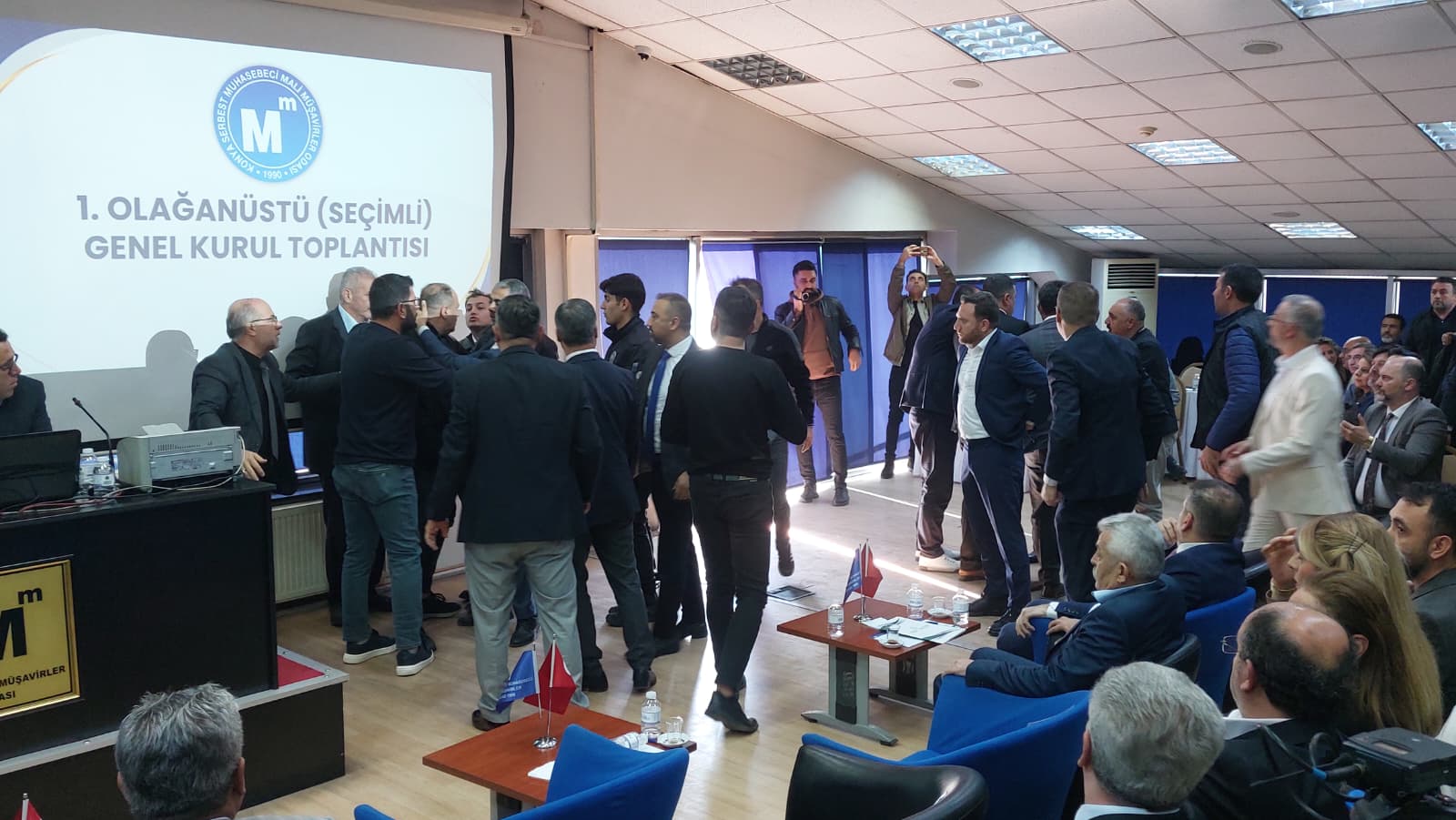 Konya Serbest Muhasebeci Mali Müşavirler Odası (SMMMO) seçimli olağanüstü genel kurul toplantısı yoğun katılımla gerçekleştirildi. Toplantı sırasında zaman zaman gergin anlar yaşandı.