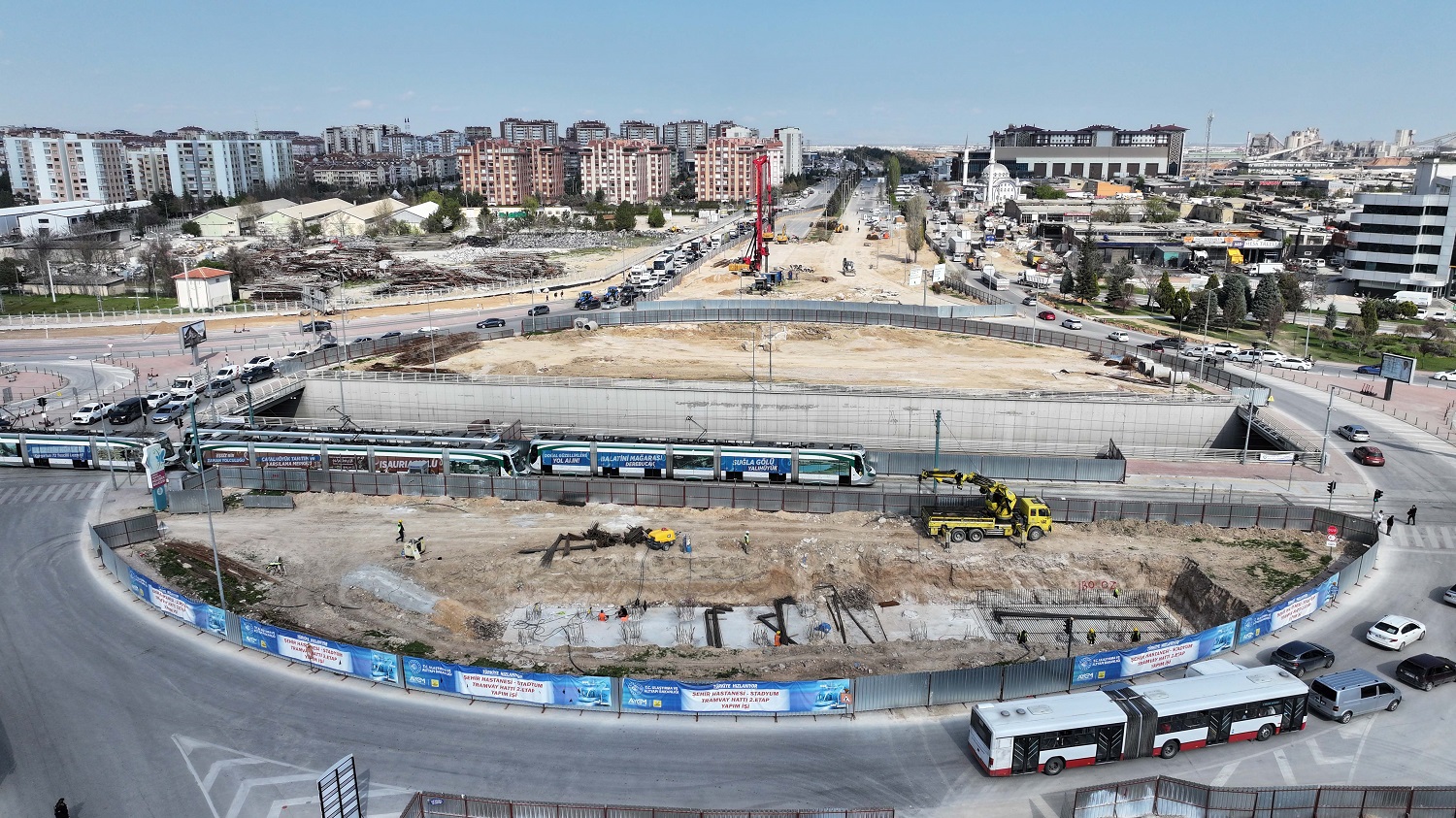 Ulaştırma ve Altyapı Bakanlığı ile Konya Büyükşehir Belediyesi tarafından yürütülen Stadyum-Şehir Hastanesi Tramvay Hattı ikinci etabı kapsamında şehre kazandırılacak Otogar kavşağının yapım çalışmaları son sürat devam ediyor.