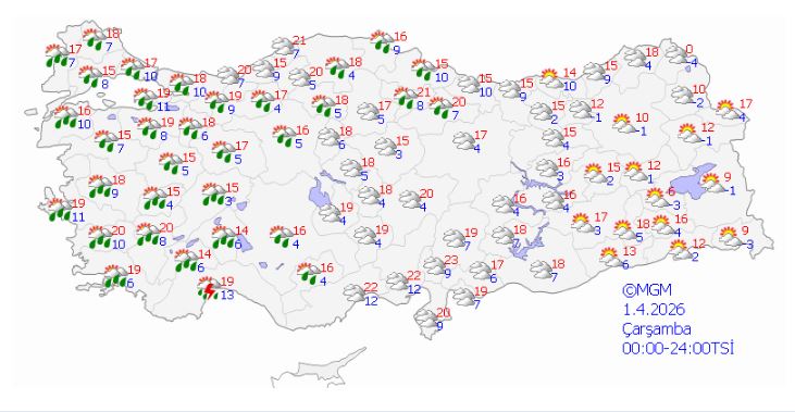 Meteoroloji Genel Müdürlüğü'nden alınan bilgilere göre Konya için 5 günlük hava durumu tahmini: