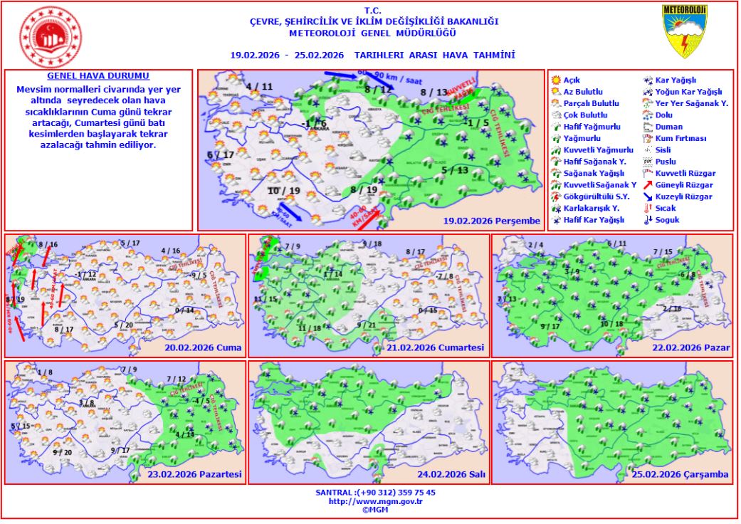Meteoroloji Genel Müdürlüğü'nden alınan bilgilere göre Konya için 5 günlük hava durumu tahmini: