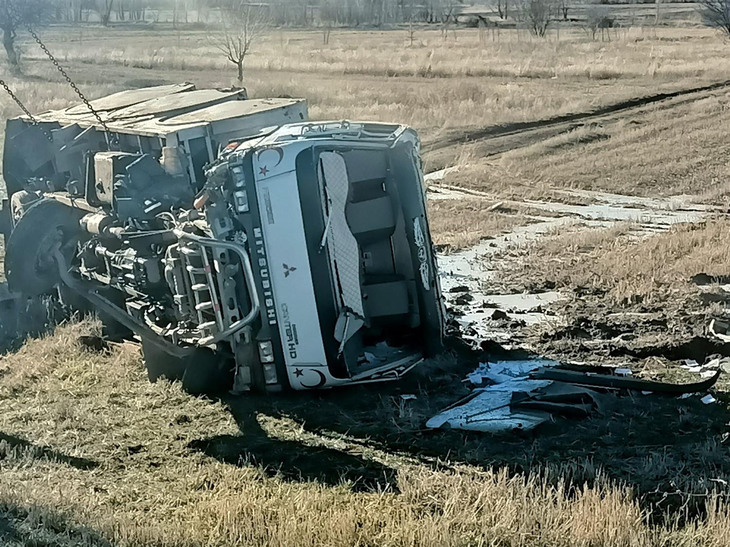 Yunus D. idaresindeki 32 ADJ 221 plakalı kamyon, sürücüsünün direksiyon hakimiyetini kaybetmesi sonucu kontrolden çıktı.
