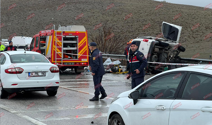 Konya'da meydana gelen trafik kazasında otomobil ile hafif ticari araç kafa kafaya çarpıştı. İlk belirlemelere göre kazada 2 kişi hayatını kaybederken, 4 kişi yaralandı.