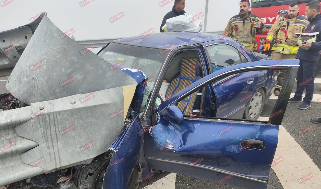 Konya yolunda otomobil bariyerlere çarptı! 2 yaralı