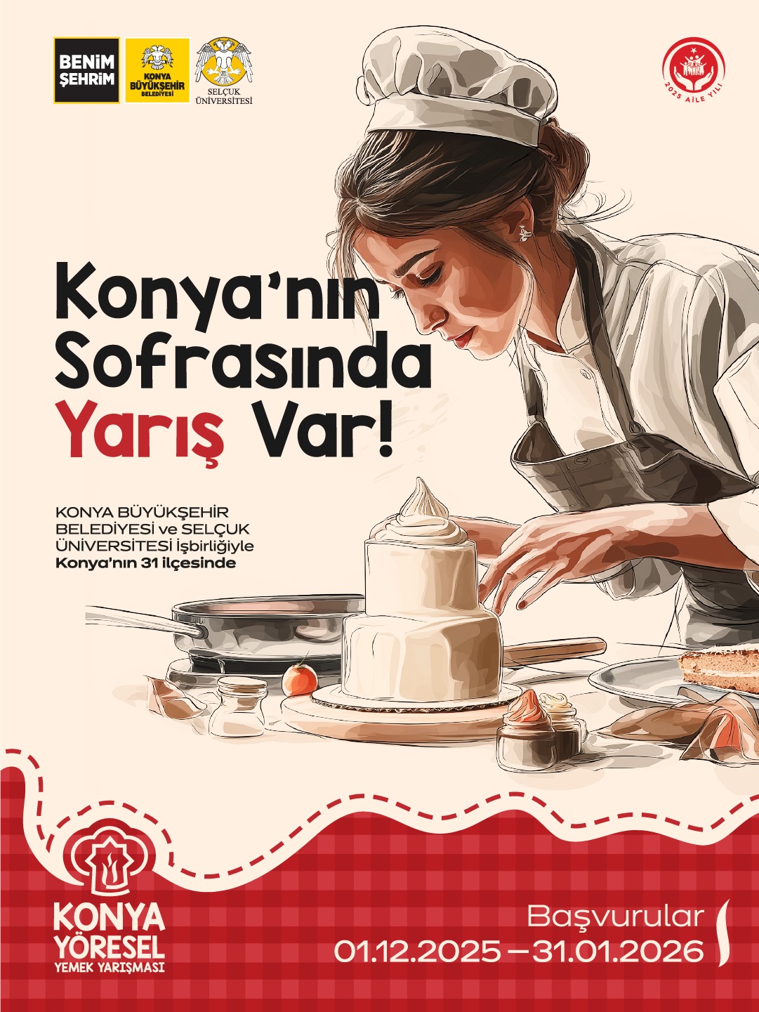 Konya Büyükşehir Belediyesi ve Selçuk Üniversitesi iş birliğinde Konya merkez ve tüm ilçeleri kapsayacak şekilde 3 aşamalı olarak gerçekleştirilecek “Konya Yöresel Yemek Yarışması”na kayıtlar başladı. Yarışmaya katılmak isteyen vatandaşlar, 31 Ocak 2026 tarihine kadar başvuru yapabilecek.