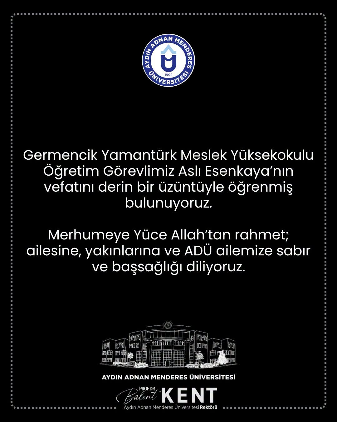 Aydın Adnan Menderes Üniversitesi Öğretim Görevlisi Konyalı genç akademisyen Aslı Esenkaya, uzun süredir mücadele ettiği pankreas kanseri nedeniyle hayatını kaybetti. Genç akademisyenin vefatı, ailesi, öğrencileri ve eğitim camiasında derin üzüntüye yol açtı.