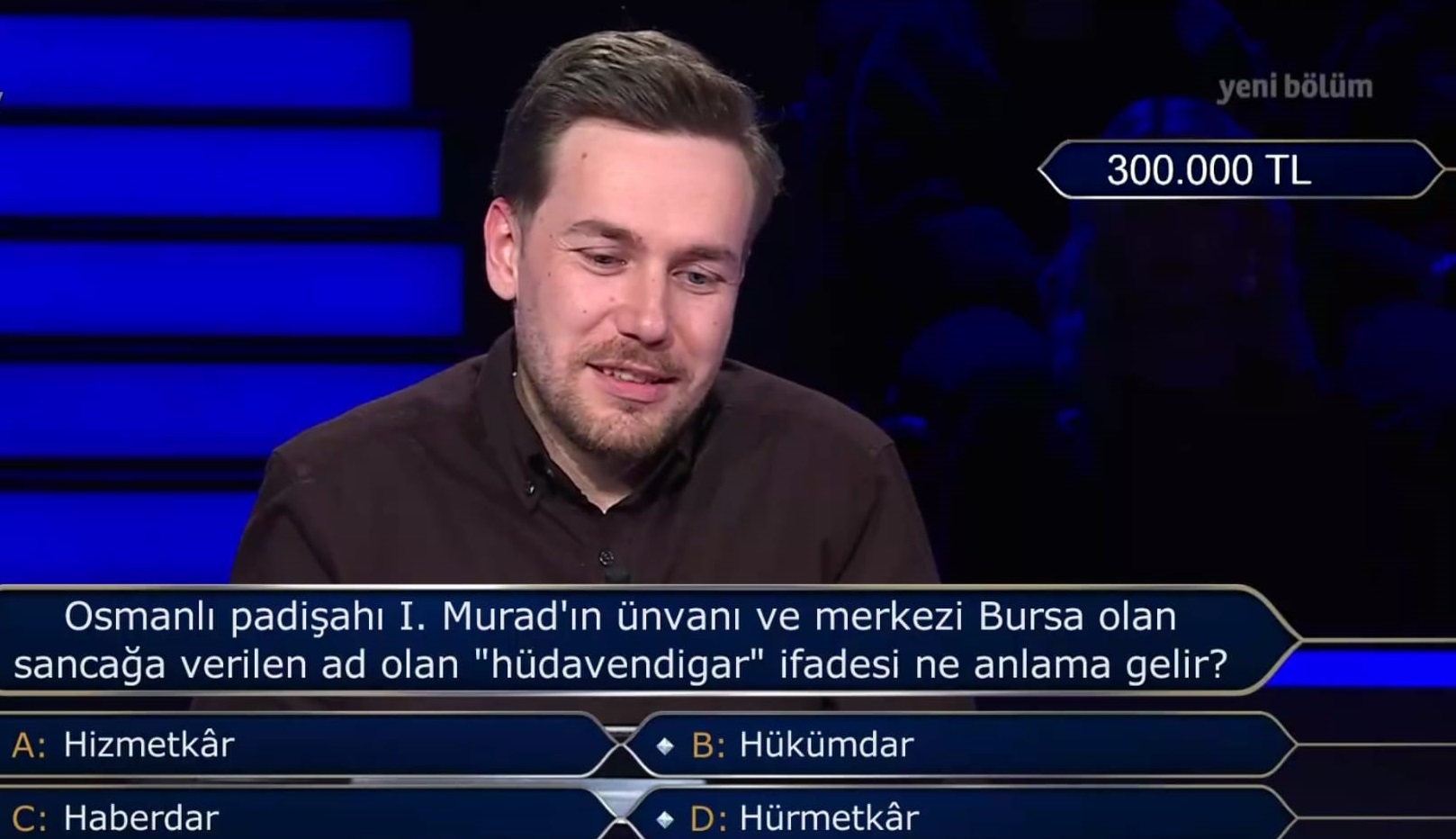 Bilgisi ve mantık yürütme kabiliyetiyle 300 Bin TL değerindeki soruya kadar ulaşan Hasan Baran, bu aşamada tüm joker haklarını tüketmişti.