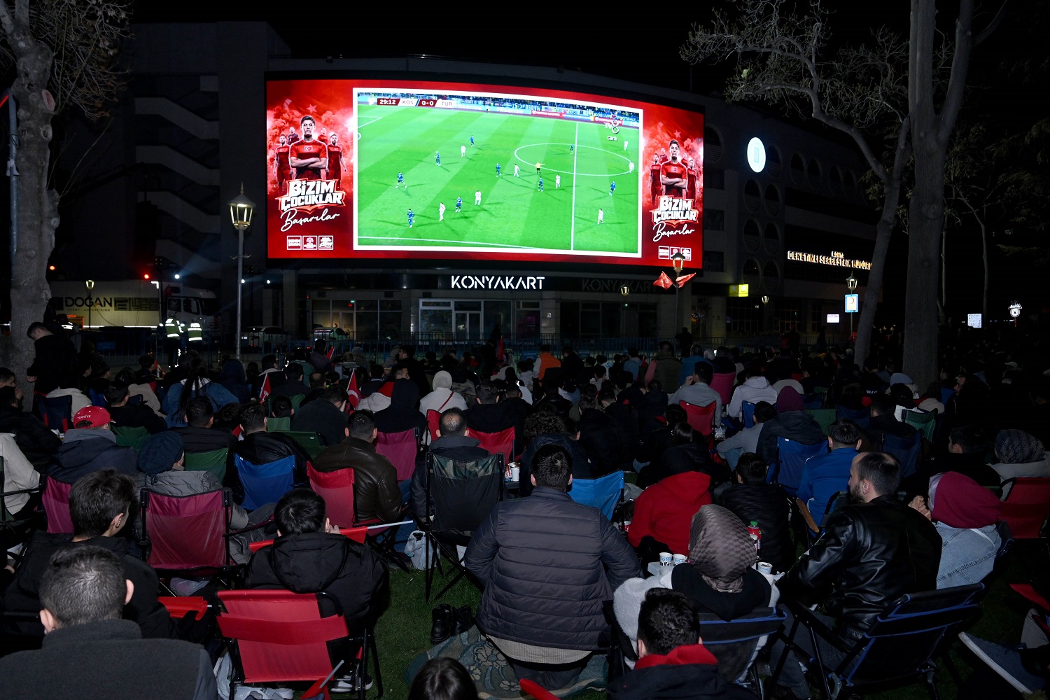 Millilerin tarihi zaferi tüm yurtta olduğu gibi Konya'da da coşkuyla kutlandı. Konya Büyükşehir Belediyesi, tarihi maçı Zindankale Katlı Otoparkı'ndaki dev ekrandan canlı vererek Konyalılara milli coşkuyu yaşattı.