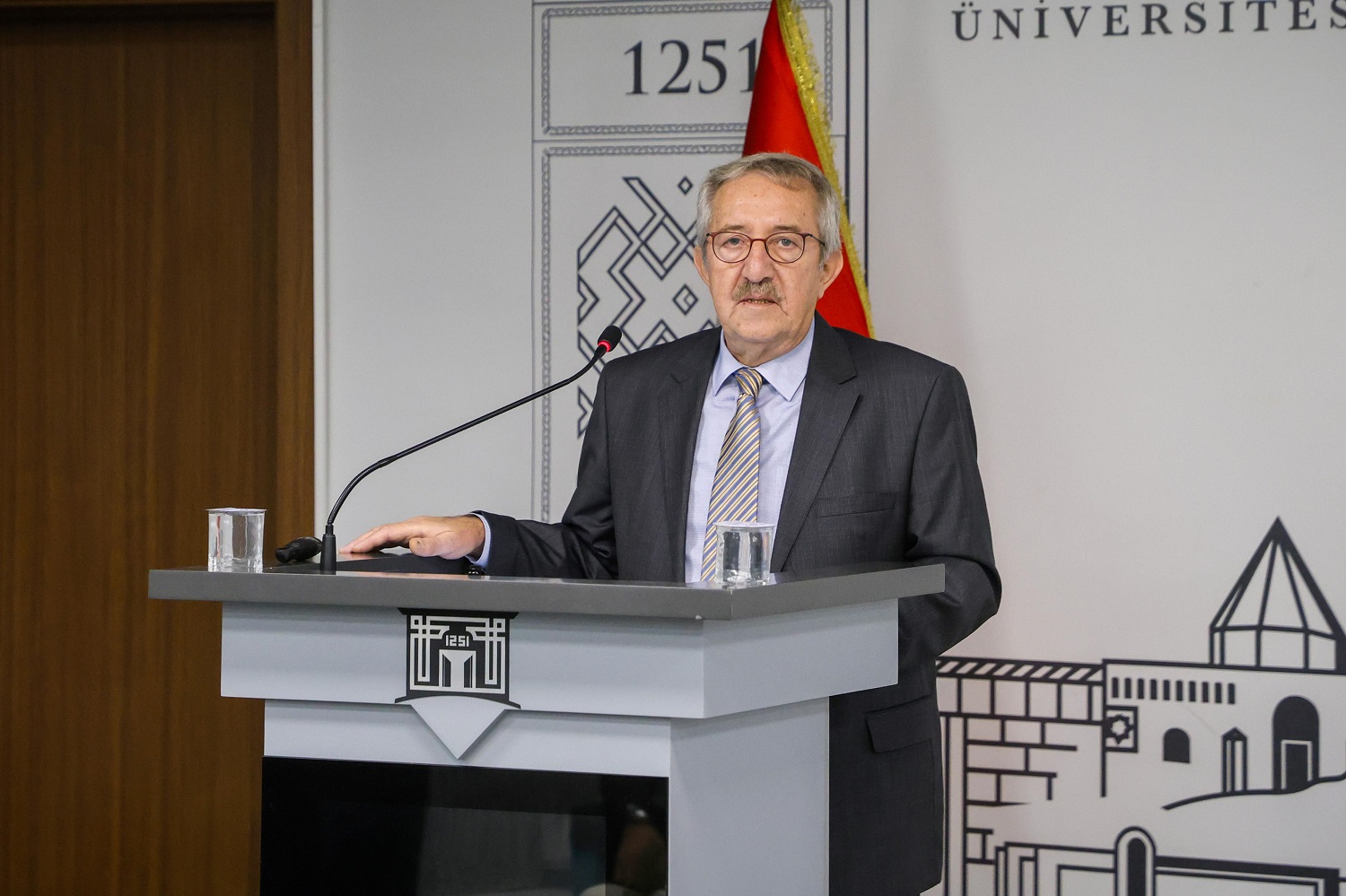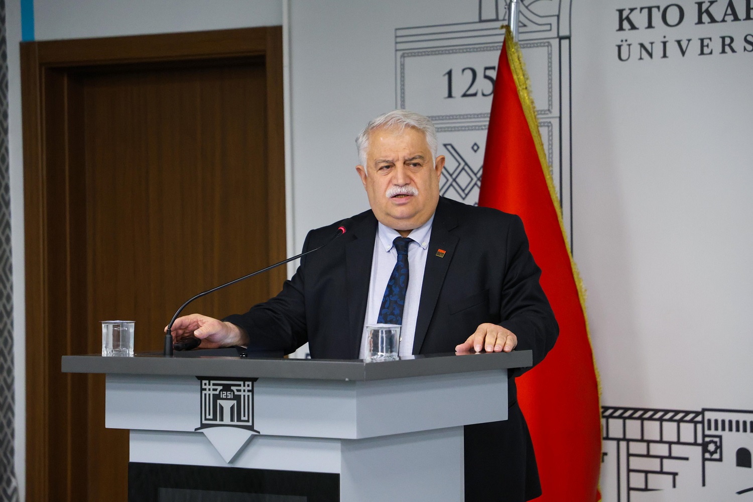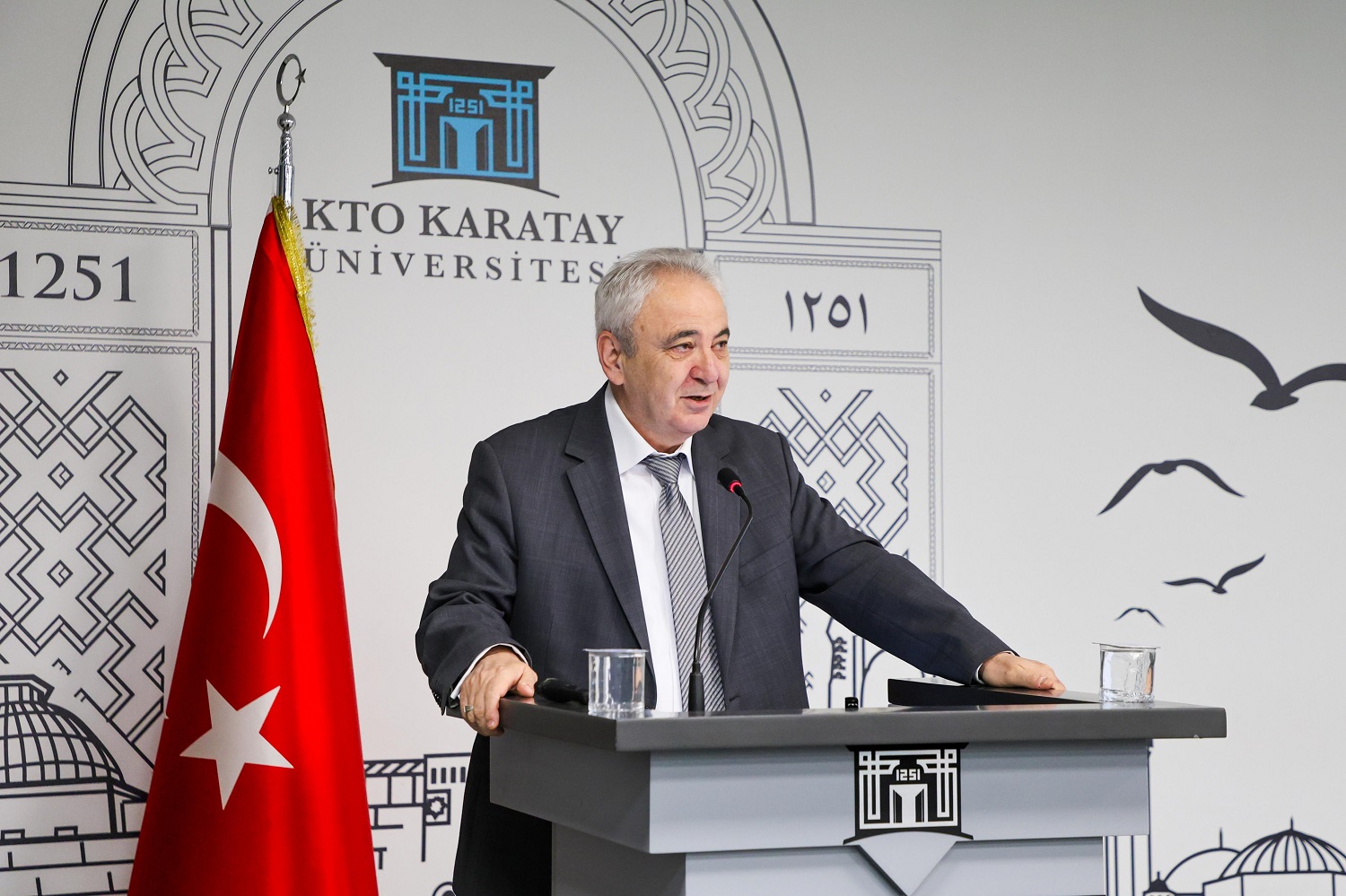 Söyleşinin açılış konuşmasını yapan KTO Karatay Üniversitesi Rektörü Prof. Dr. Fevzi Rifat Ortaç; "KTO Karatay Üniversitesi olarak bir yandan bilim alanında çalışmalarımız devam ediyor, diğer taraftan akademik yayınlar üzerinde hassasiyetle duruyoruz. Üniversitelerin temel görevi, bilim üretmek, ürettiği bilimi de toplumla paylaşabilmektir. Prof. Dr. Muzaffer Şeker'in de bugün bizimle paylaşacağı bilim diplomasisi çok önemli bir konu. Türkiye Bilimler Akademisi'nin çalışmaları, ülkemizin bilimsel görünürlüğünü artırırken genç araştırmacılarımıza da yeni ufuklar açıyor. Bu duygu ve düşüncelerle programın hayırlara vesile olmasını temenni ediyorum” şeklinde konuştu.