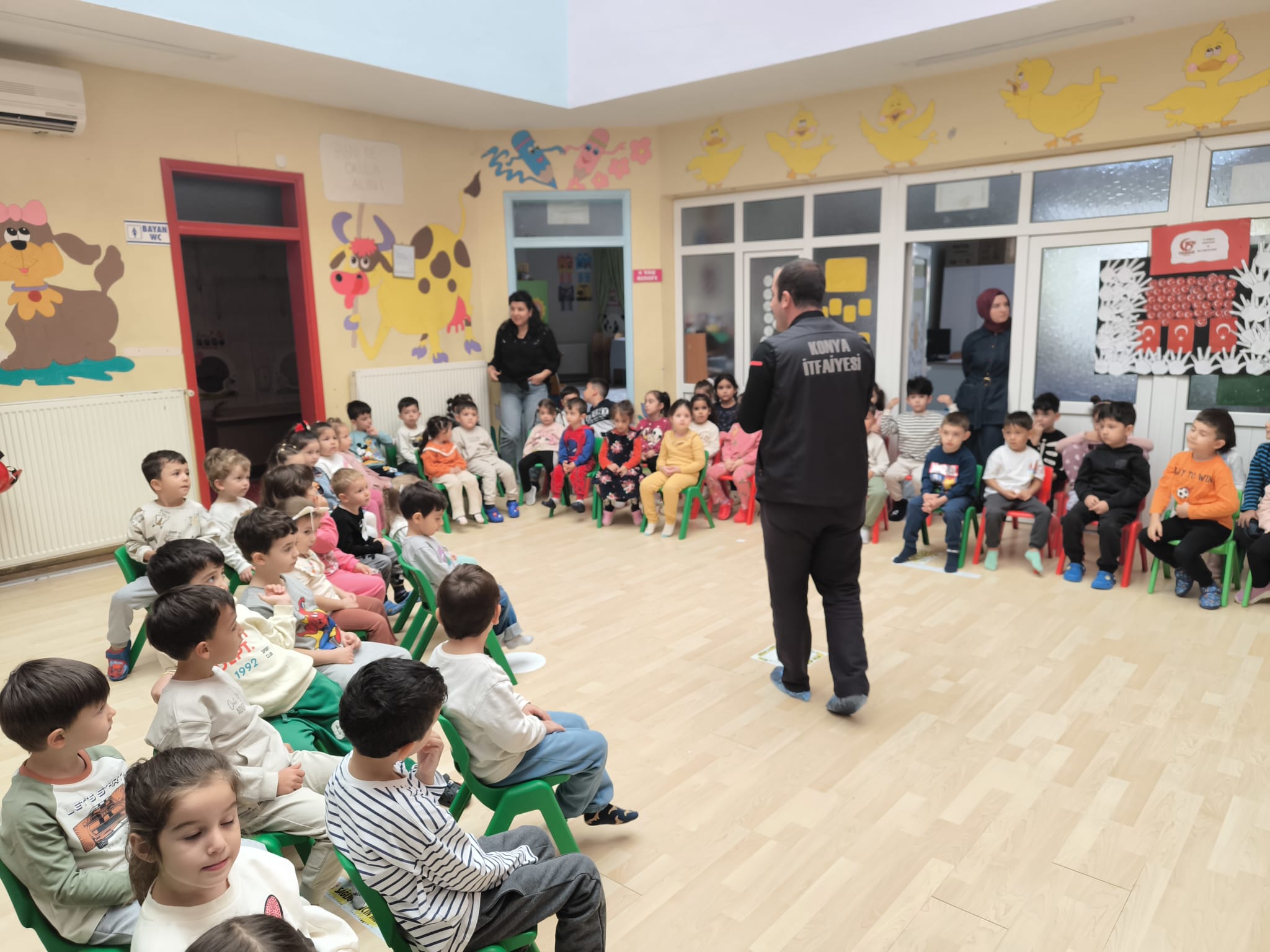 Konya Büyükşehir Belediyesi Kulu İtfaiye Amirliği ekipleri, Anaokulu öğrencileriyle bir araya gelerek yangın, yangından korunma ve yangın söndürme konularında bilgilendirme yaptı. İtfaiye araçlarını da yakından inceleme fırsatı bulan öğrenciler, hem eğlenceli hem de öğretici bir gün geçirdi.