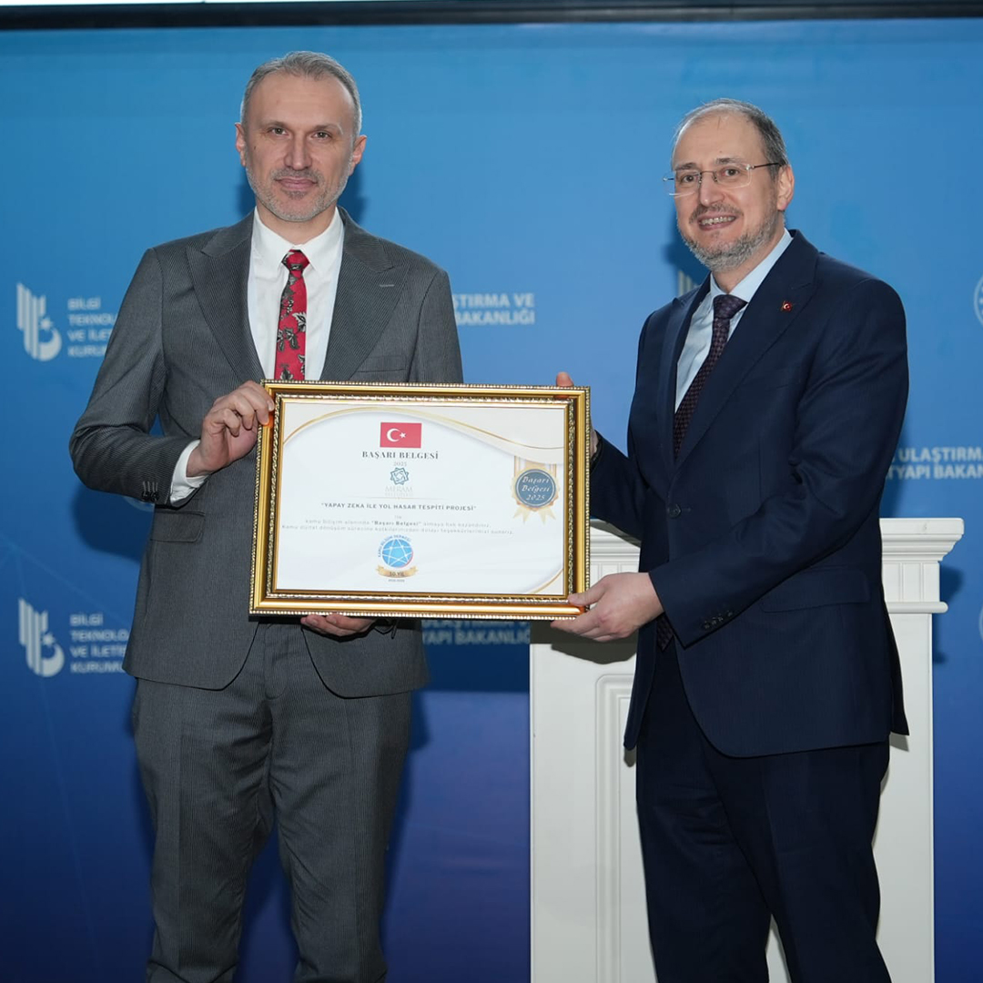 Kamu Bilişim Derneği tarafından düzenlenen Kamu Dijital Dönüşüm Zirvesi kapsamında, Meram Belediyesi'nin hayata geçirdiği "Yapay Zeka ile Yol Hasar Tespiti Projesi”, yenilikçi yaklaşımı ve sahadaki somut katkılarıyla ödüle layık görüldü. Akıllı şehirlerde yapay zekanın etkin kullanımını merkeze alan zirvenin 6. Oturumunda, belediyecilik hizmetlerinde dijital teknolojilerin sahaya yansıyan çıktıları ele alındı. Bu kapsamda Meram Belediyesi Bilgi İşlem Müdürü Turgay Turhan, "Yapay Zeka ile Yol Hasar Tespiti Projesi” başlıklı sunumuyla Meram'ın dijital dönüşüm yolculuğunu katılımcılarla paylaştı.