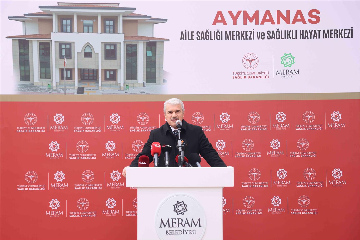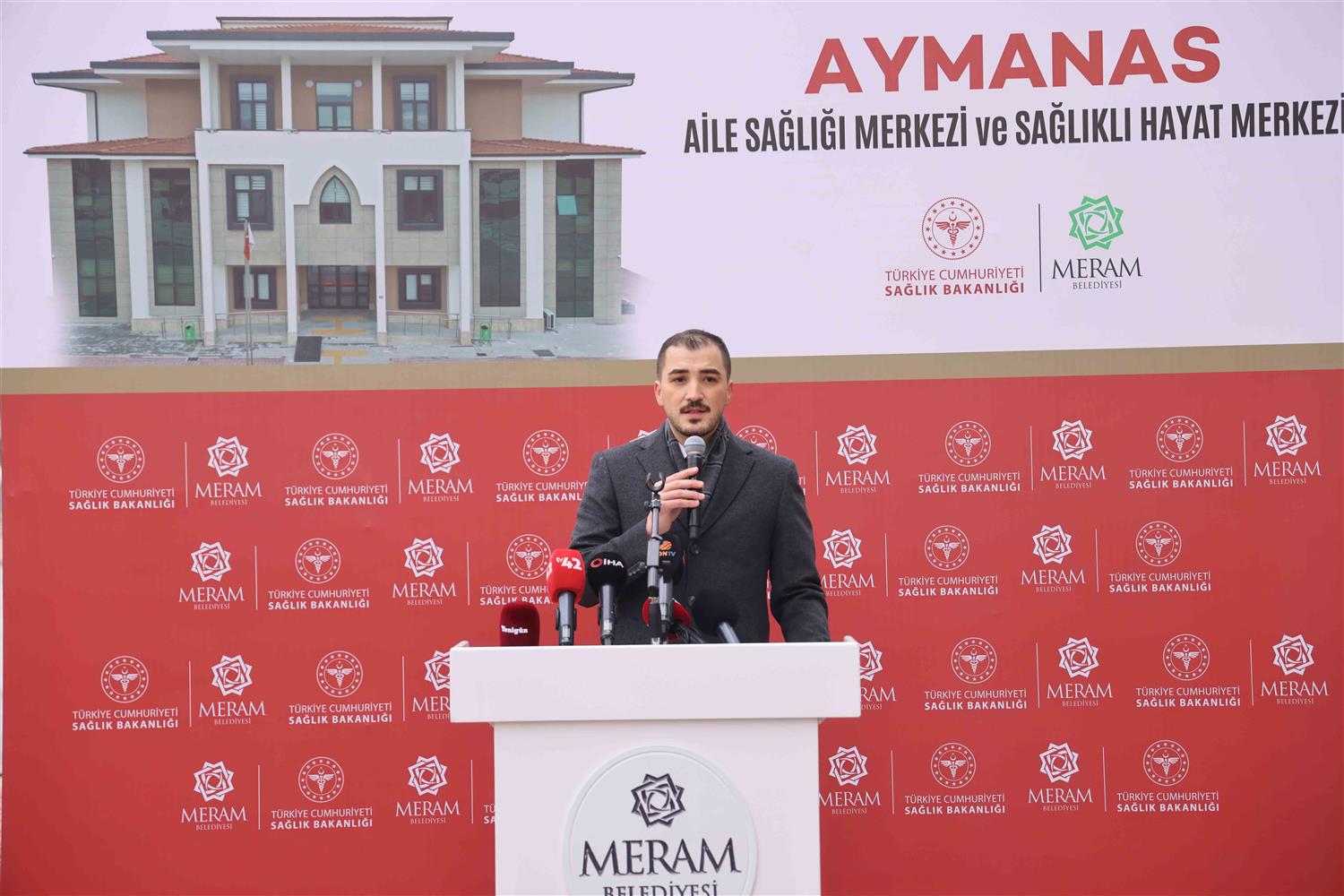 Meram Belediyesi ile Konya İl Sağlık Müdürlüğü iş birliğinde yapımı tamamlanan Aymanas Aile Sağlığı Merkezi ve Sağlıklı Hayat Merkezi, düzenlenen törenle hizmete açıldı. Açılış programına; Konya Valisi İbrahim Akın, Konya Büyükşehir Belediyesi Başkan Vekili Ahmet Murat Koru, Meram Kaymakamı Dr. Bayram Yılmaz, Selçuklu Belediye Başkanı Ahmet Pekyatırmacı, Karatay Belediye Başkanı Hasan Kılca, Meram Belediye Başkanı Mustafa Kavuş, Konya İl Sağlık Müdürü Doç. Dr. Yusuf Yavuz, AK Parti İl Başkan Vekili Halil İbrahim Yener, AK Parti Meram İlçe Başkanı Mehmet Munlafalıoğlu, MHP Meram İlçe Başkanı Mahmut Yaman, Ak Parti Meram İlçe Kadın Kolları Başkanı Serpil Yurdaışık, belediye meclis üyeleri, Konya Muhtarlar Derneği Başkanı Başkanı Hamdi Demir, muhtarlar, teşkilat mensupları, sağlık çalışanları ve çok sayıda vatandaş katıldı.