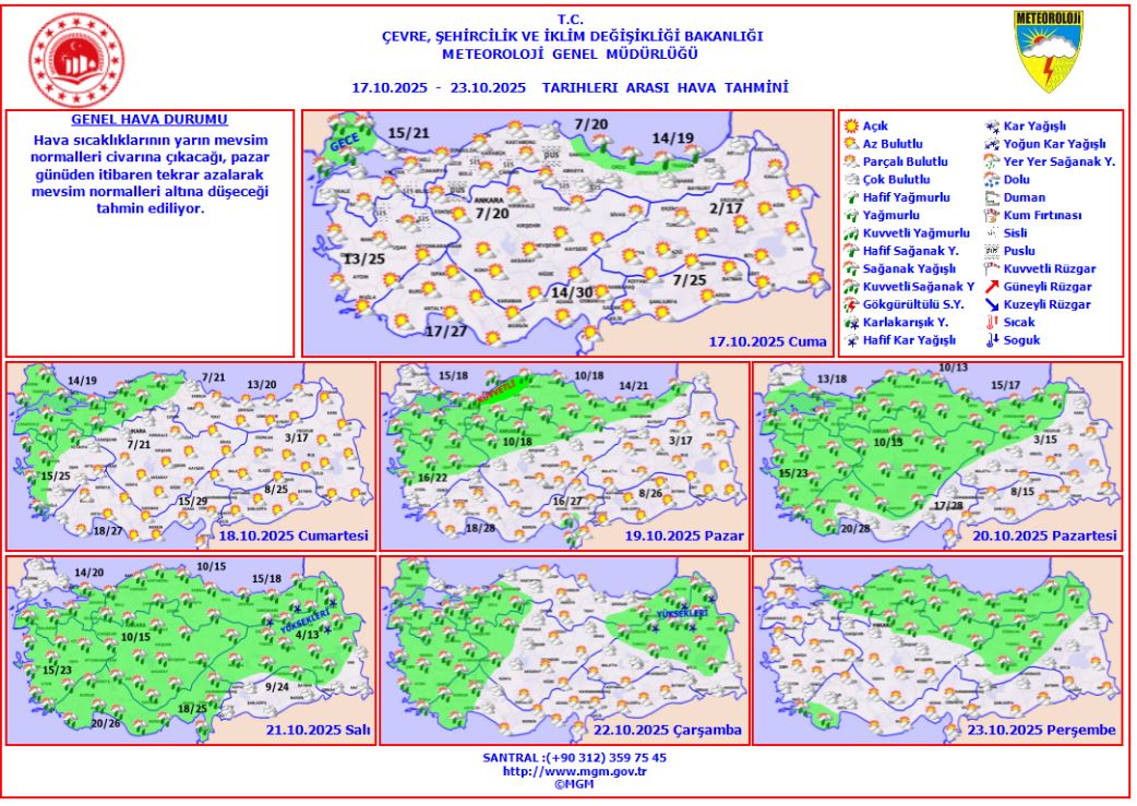 Meteoroloji Genel Müdürlüğü'nden alınan bilgilere göre Konya için 5 günlük hava durumu tahmini: