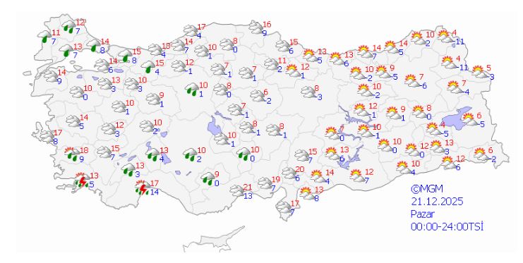 Meteoroloji yetkililerinden alınan bilgilere göre, özellikle gece saatlerinde bazı ilçelerde sıcaklık -7°C'ye kadar düşecek. Sabah ve gece saatlerinde buzlanma ve don olayı ile birlikte pus ve yer yer sis bekleniyor. Hava sıcaklığında önemli bir değişiklik beklenmiyor. Rüzgarın ise genellikle güney yönlerden hafif ara sıra orta kuvvette esmesi bekleniyor.