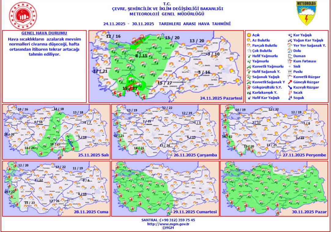 Meteoroloji Genel Müdürlüğü'nden alınan bilgilere göre Konya için 5 günlük hava durumu tahmini: