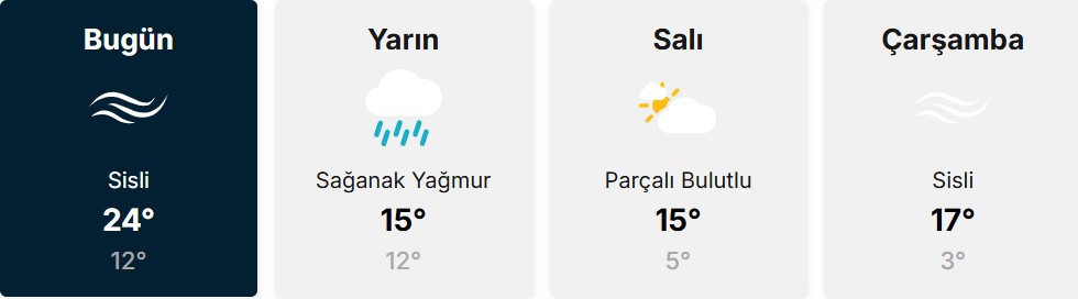 Bugün için Konya hava durumu Sisli, sıcaklık 24°.