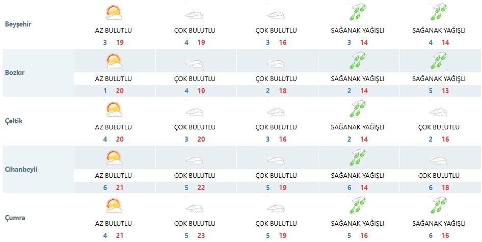 Meteoroloji yetkilileri, yağışların ardından hafta sonuna kadar hava sıcaklıklarının mevsim normallerinin altında seyretmeye devam edeceğini belirtti. Konya'da yağışlı hava dalgasının ardından soğuk ve kapalı bir hava bekleniyor.