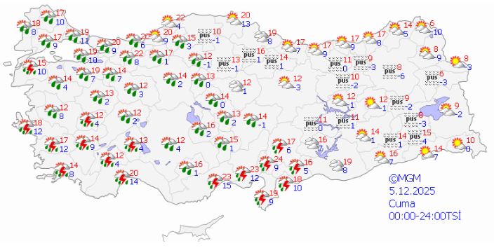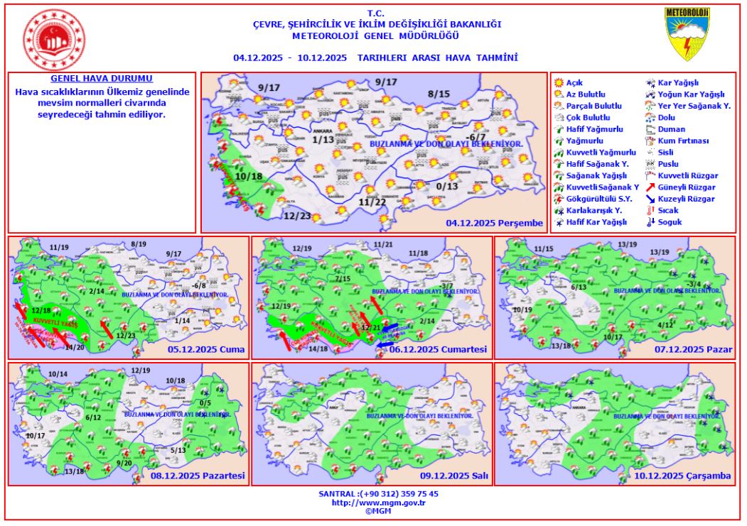 Meteoroloji Genel Müdürlüğü'nden alınan bilgilere göre Konya için 5 günlük hava durumu tahmini: