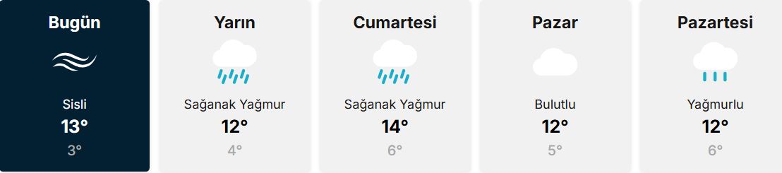 Pazartesi Konya hava durumu Yağmurlu, sıcaklık 12°.