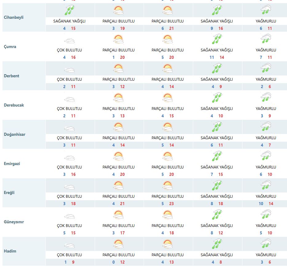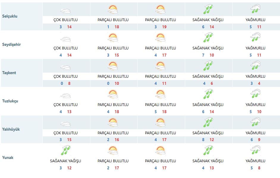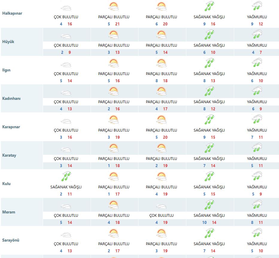 İŞTE İLÇE İLÇE KONYA HAVA DURUMU