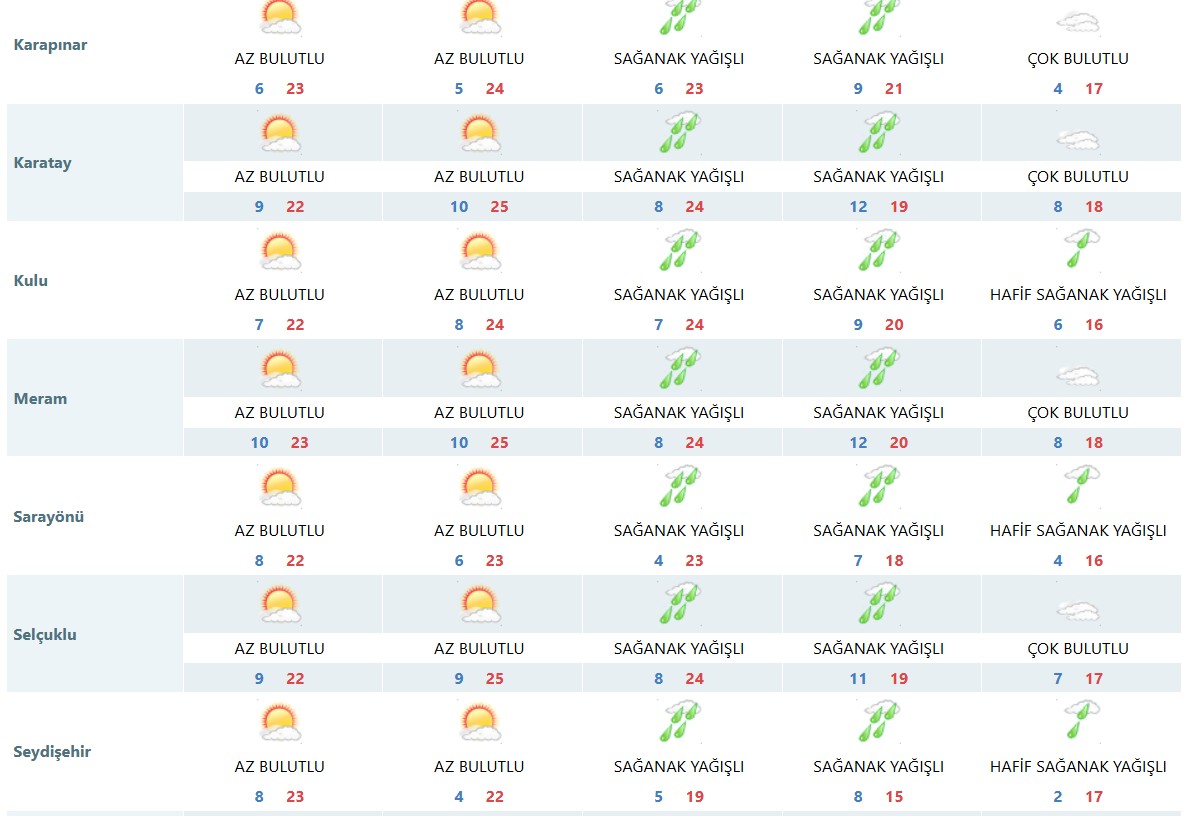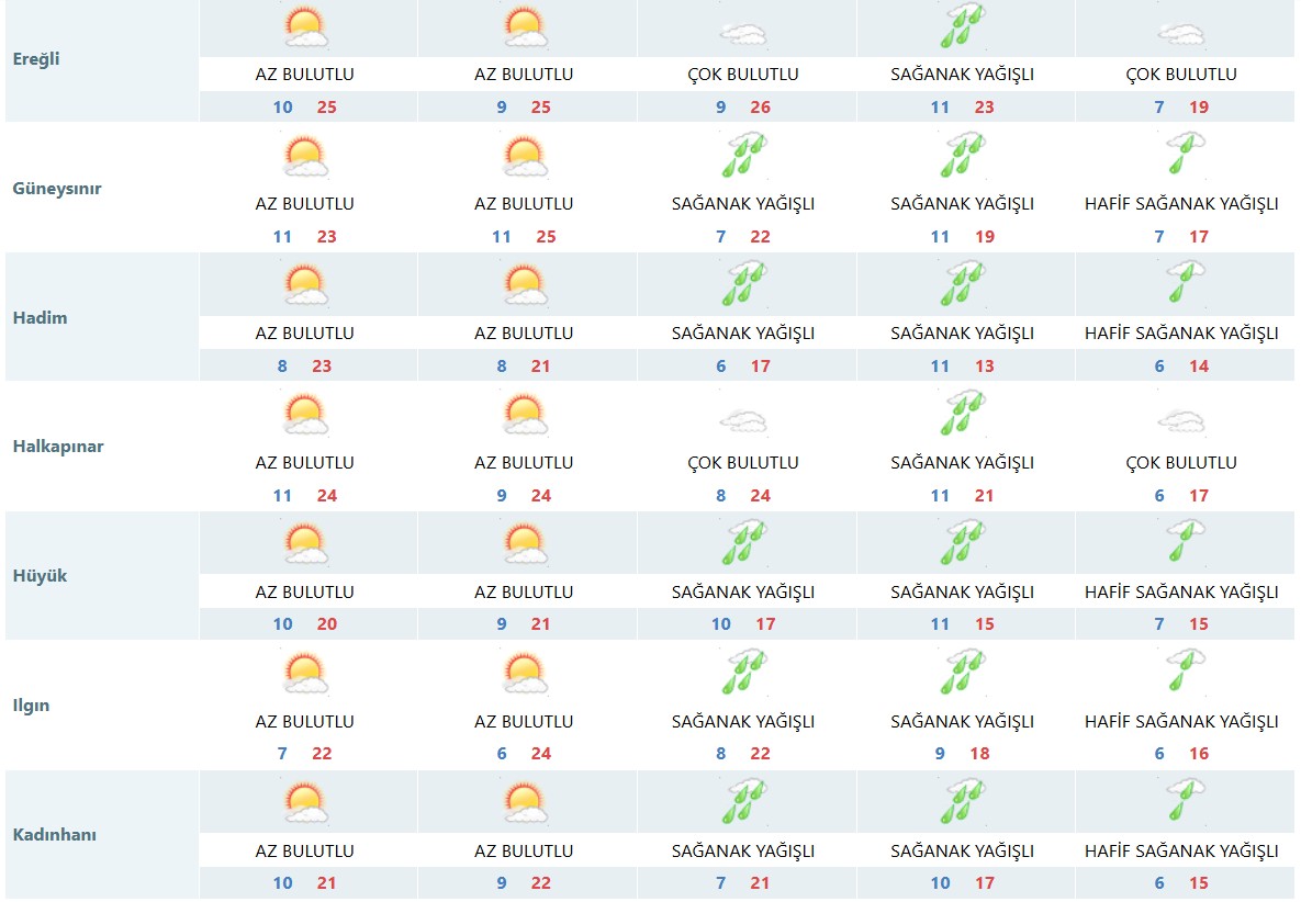İŞTE KONYA İLÇE İLÇE HAVA DURUMU