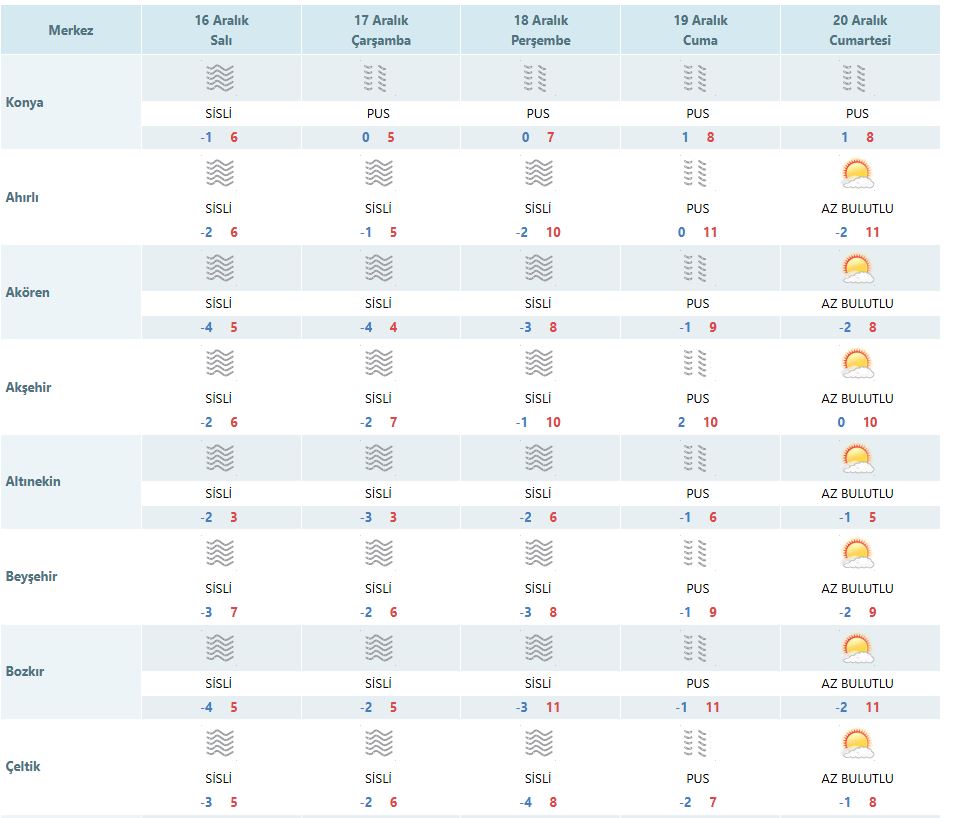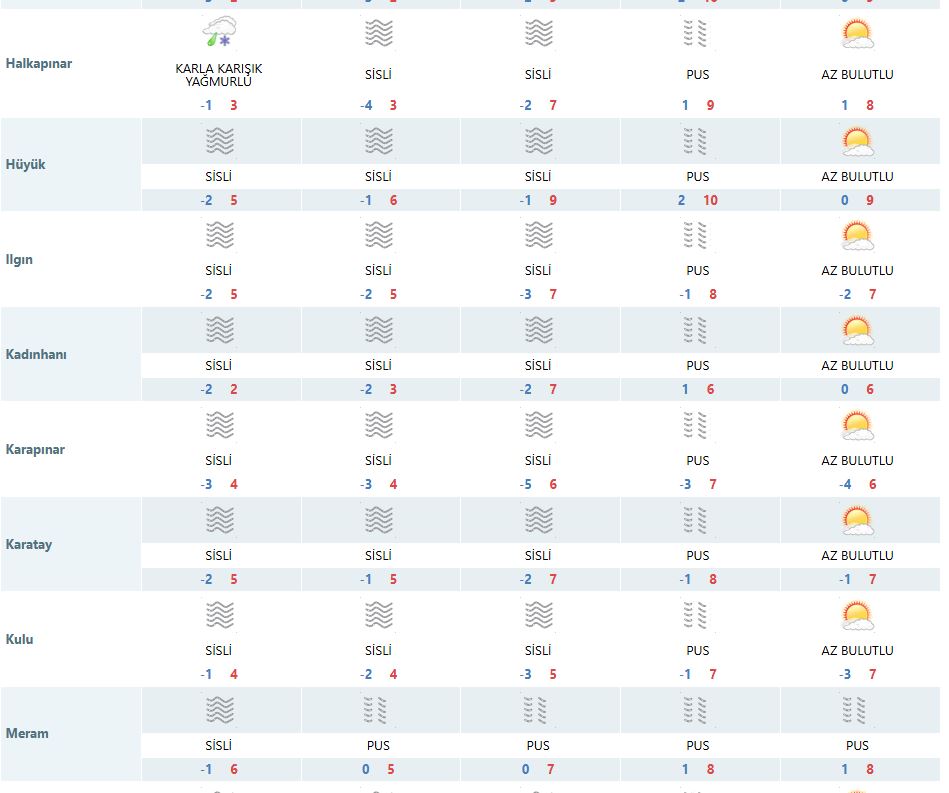 İŞTE İLÇE İLÇE KONYA HAVA DURUMU