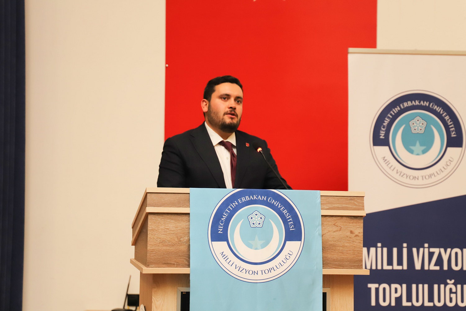 Konferansta konuşan Eski Kamu Başdenetçisi Şeref Malkoç, gençlerle bir araya gelmekten duyduğu memnuniyeti aktararak, "Programın Necmettin Erbakan Üniversitende düzenleneceğini öğrenince tüm programlarımızı erteleyip Konya'ya gelmeyi bir vazife olarak gördük. İyi ki böyle yapmışız. Gençlerimizden aldığımız enerji ile çalışmalarımızı sürdüreceğiz” ifadelerini kullandı.