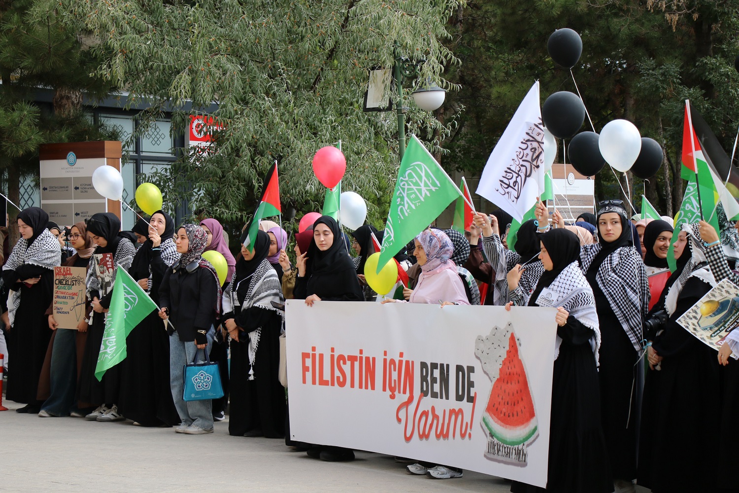 Öğrenci toplulukları sözcüsü Ahmet Talha Koçak ise, "Bugün Filistin'de, Gazze'de, nice masum çocuklar daha isimleri konulmadan, kulaklarına ezan bile okunmadan toprağa veriliyor. Biz bu derdi taşımazsak, soykırımcılara karşı nasıl bir cevap verebiliriz. İşte bu şuurla bugün buradayız. 7 Ekim Aksa Tufanı'nın yıldönümünde Sumud Filosu gibi nice diriliş hareketlerini destek amacıyla bir araya geldik. Hem bir anma hem bir direniş hatırlatması olsun istiyoruz. Çünkü biliyoruz ki ümmet olursak sesimiz daha gür çıkar, adaletin sesi daha uzaklara ulaşır. Rabbim birlik ve beraberliğimizi daim eylesin” diye konuştu.