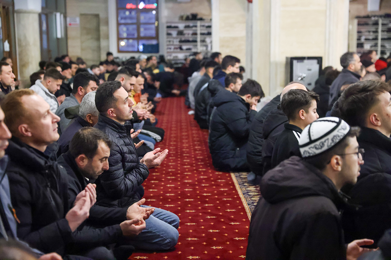 Berat Kandili'nin manevi atmosferinde gerçekleşen programda Kur'an-ı Kerim tilaveti ve Mevlid-i Şerifler okunurken İsrail'in zulmüne maruz kalan Gazze halkı ve tüm İslam alemi için dualar edildi.