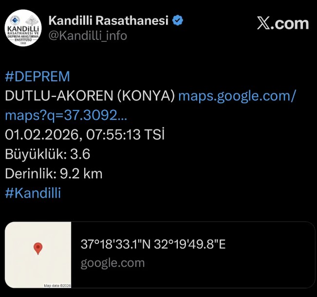 Söz konusu sarsıntının Konya Akören merkezli olduğu ortaya çıktı.
