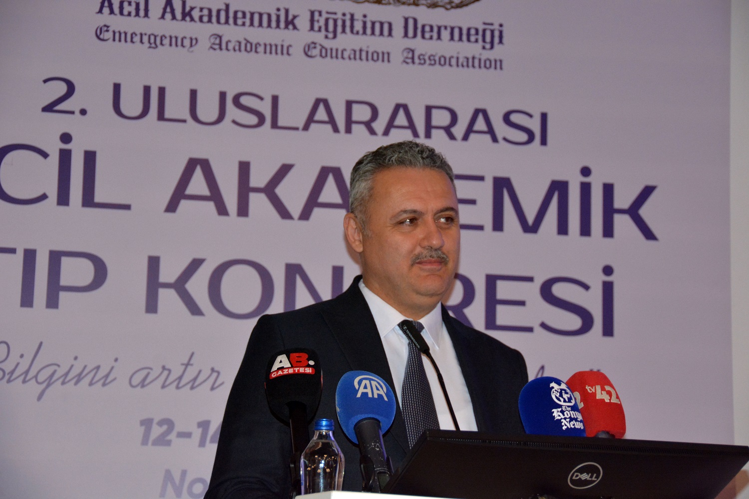 2. Uluslararası Acil Akademik Tıp Kongresi'nin Konya'da düzenlenmesinde emeği geçen herkese teşekkür ederek konuşmasına başlayan Konya İl Sağlık Müdürü Doç. Dr. Yusuf Yavuz da, "Acil bizler için çok önemli. Sağlık Bakanlığı'nda Planlama Daire Başkanlığı görevini yürüttüğüm dönemde acil tebliğini hazırladık. Acil tebliğini yazarken sahadaki hekimlerden destek aldık. Çünkü acil servisin işleyişini en iyi onlar bilir. O dönemde 75 il gezdim ve hastanelerin acil servislerinden çok güzel geri dönüşler aldık. Yapılan ilk yorum ise bu tebliğin acilde çalışan birileri tarafından hazırlandığı oldu. Bazen bir kelimesine dahi günlerce uğraştığımız oldu. Yöneticilere her zaman hastanelere acil servislerden giriş yapmalarını, orada çalışan arkadaşların durumlarını değerlendirmelerini söylerim. Hastaneye başvuran hastaların yüzde 25-30'u acil servislere gelmektedir. Bir hastane, acil servisinde problem yaşamadığı sürece, diğer birimlerde de kolay kolay sorun yaşamaz” dedi.