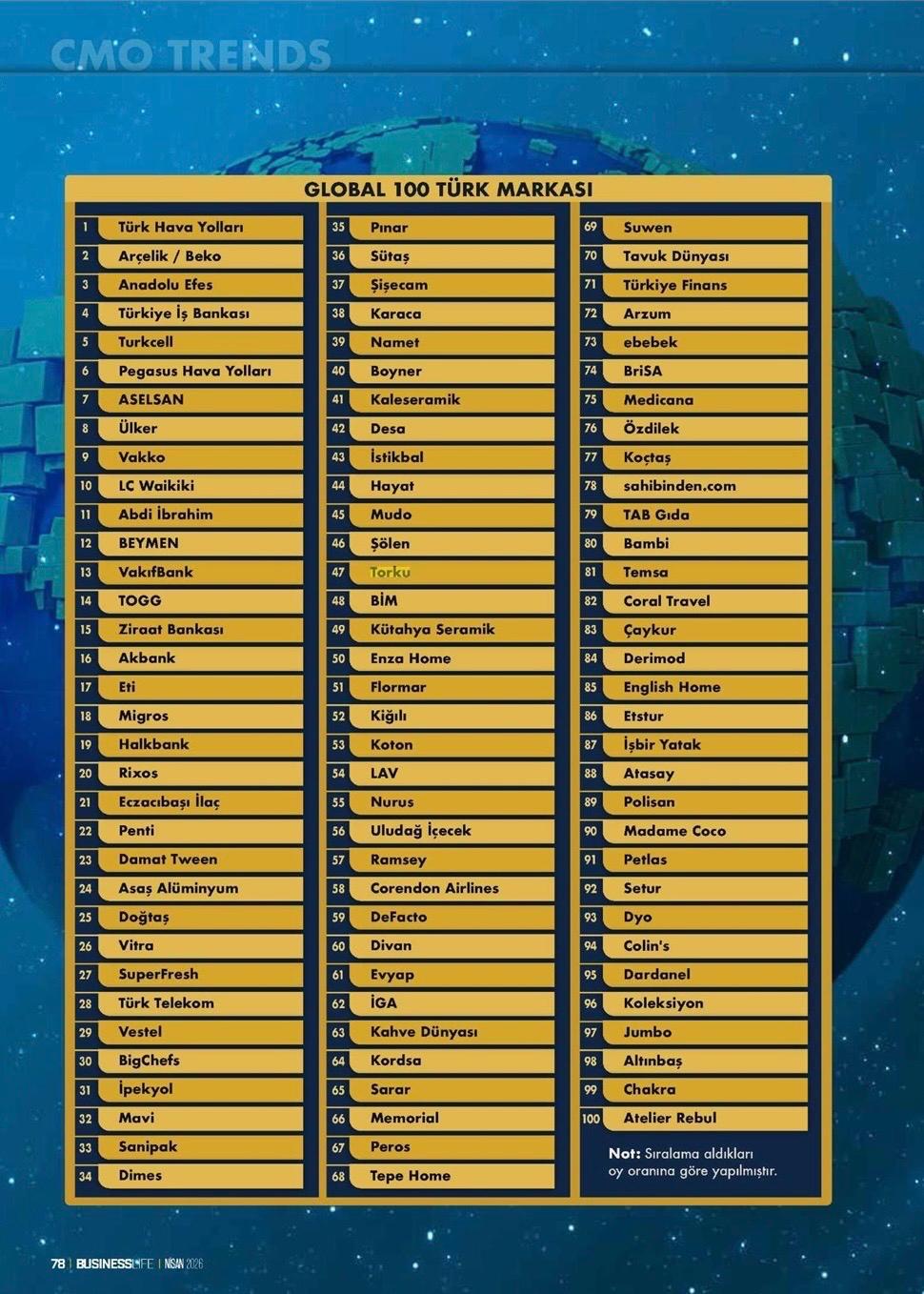 Konya’nın önde gelen markalarından TORKU, Business Life Dergisi tarafından yapılan “Global 100 Türk Markası” araştırmasında 47. sıraya yükseldi.