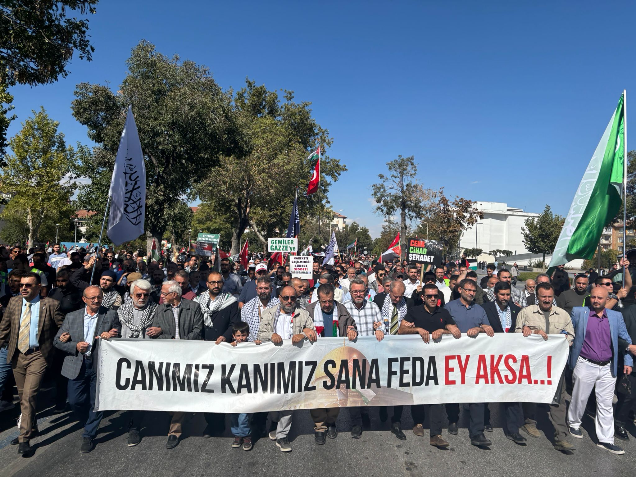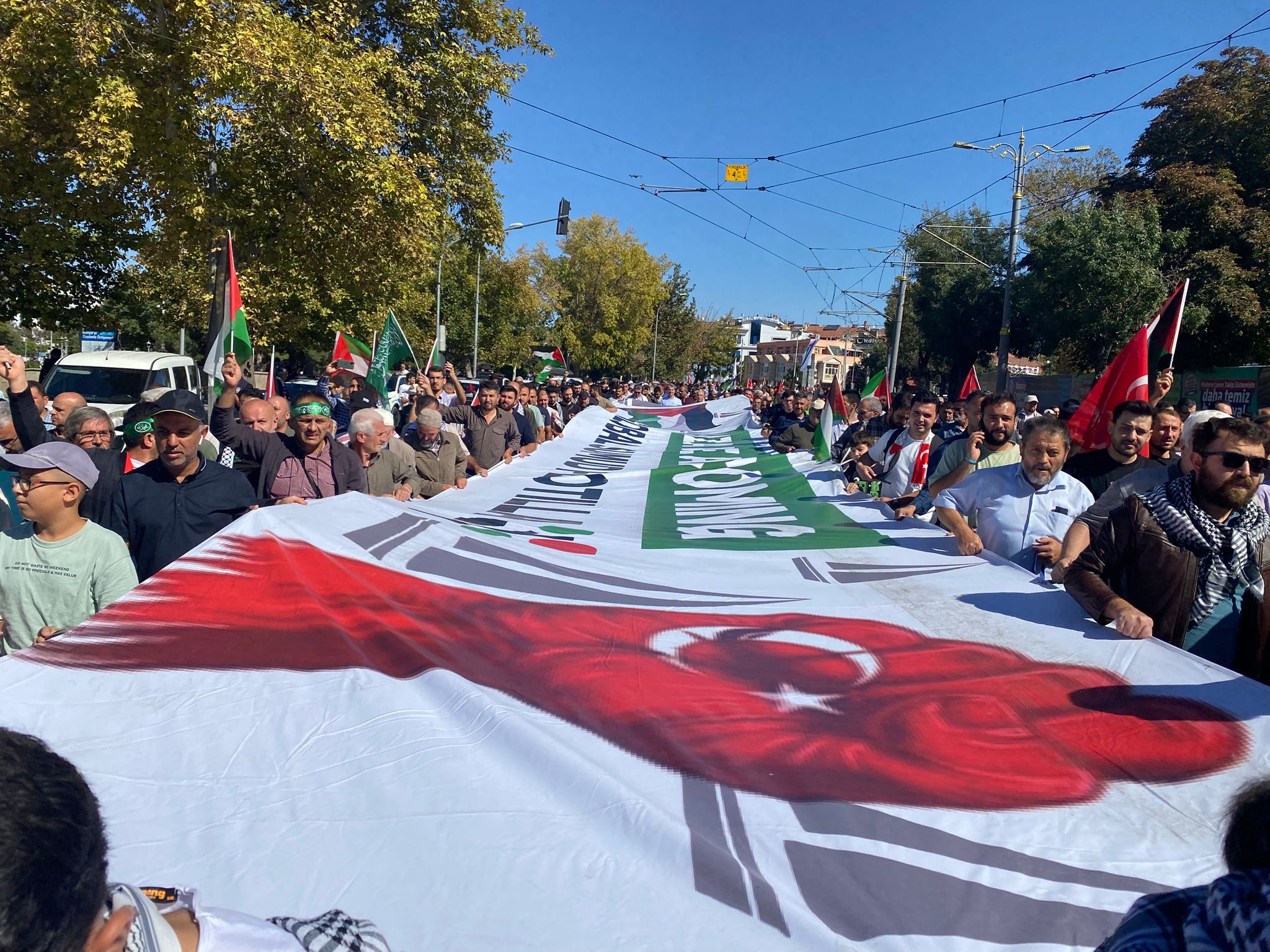 Konya Sivil Toplum Kuruluşları Platformunca organize edilen yürüyüş için vatandaşlar, Kılıçarslan Meydanı'nda toplandı. Ellerinde bayrak ve pankartlarla Mevlana Meydanı'na yürüyen kalabalık, İsrail aleyhine sloganlar attı.