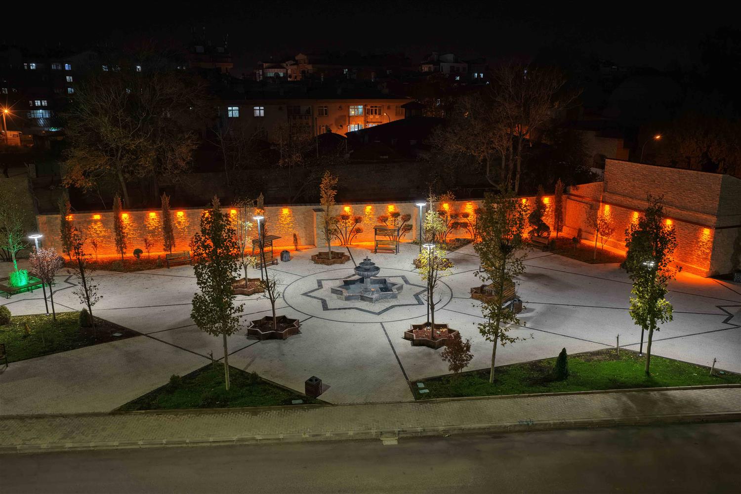 Larende Caddesi, Sahibata ve Şifa Sultan Hamamı çevresinde yer alan; bir dönem mezbelelik halde bulunan alan, belediye ekiplerinin titiz çalışmalarıyla modern, güvenli ve estetik bir sosyal yaşam alanına dönüştü. Bölge halkının kötü görüntü nedeniyle şikâyet ettiği alan, huzurlu bir yapıya dönüştürüldü. Meram Belediyesi'nin çevreye, tarihe ve insana duyarlı yaklaşımıyla hazırlanan parkta; oturma grupları, estetik aydınlatmalar ve yeşil alan düzenlemeleri yer aldı. Parkın hem gündüz hem de gece güvenle kullanılabilmesi için modern aydınlatma sistemleri kuruldu; peyzaj çalışmalarıyla tarihi bölgenin dokusuna uygun bir çevre estetiği sağlandı.
