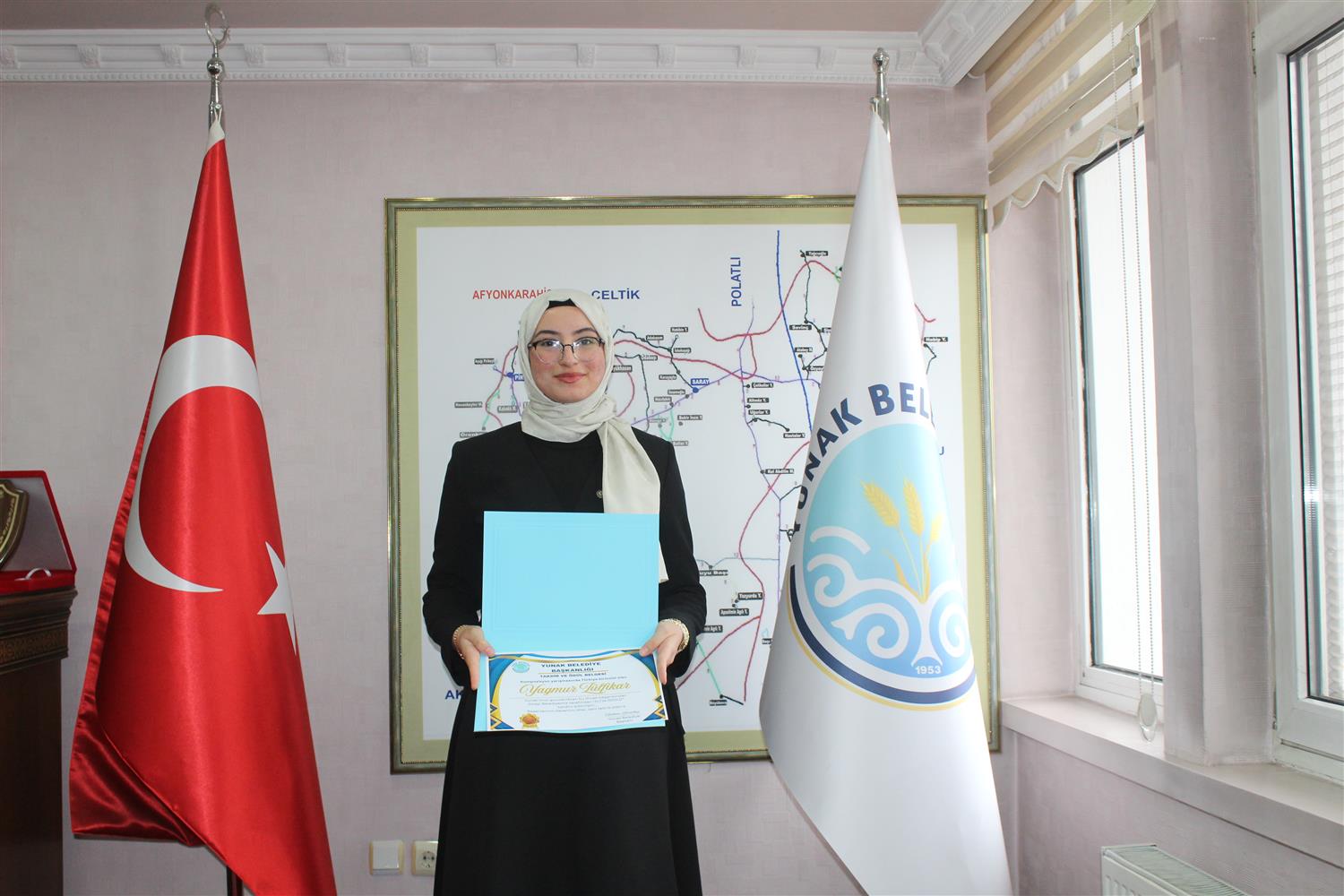 Günaltay, belediye olarak eğitime ve öğrencilere destek vermeye devam edeceklerini belirterek, Zülfikar'ı altın başarı plaketi ve çeşitli hediyelerle ödüllendirdi.
